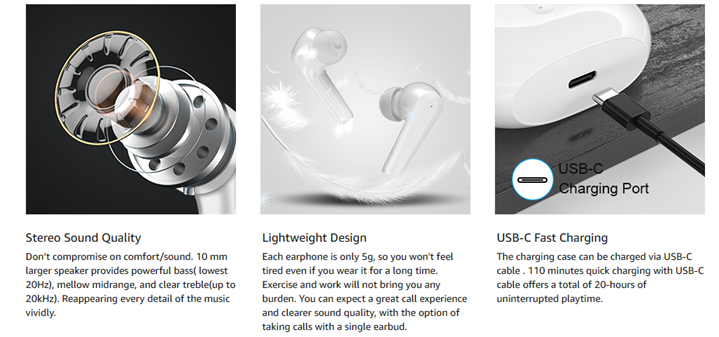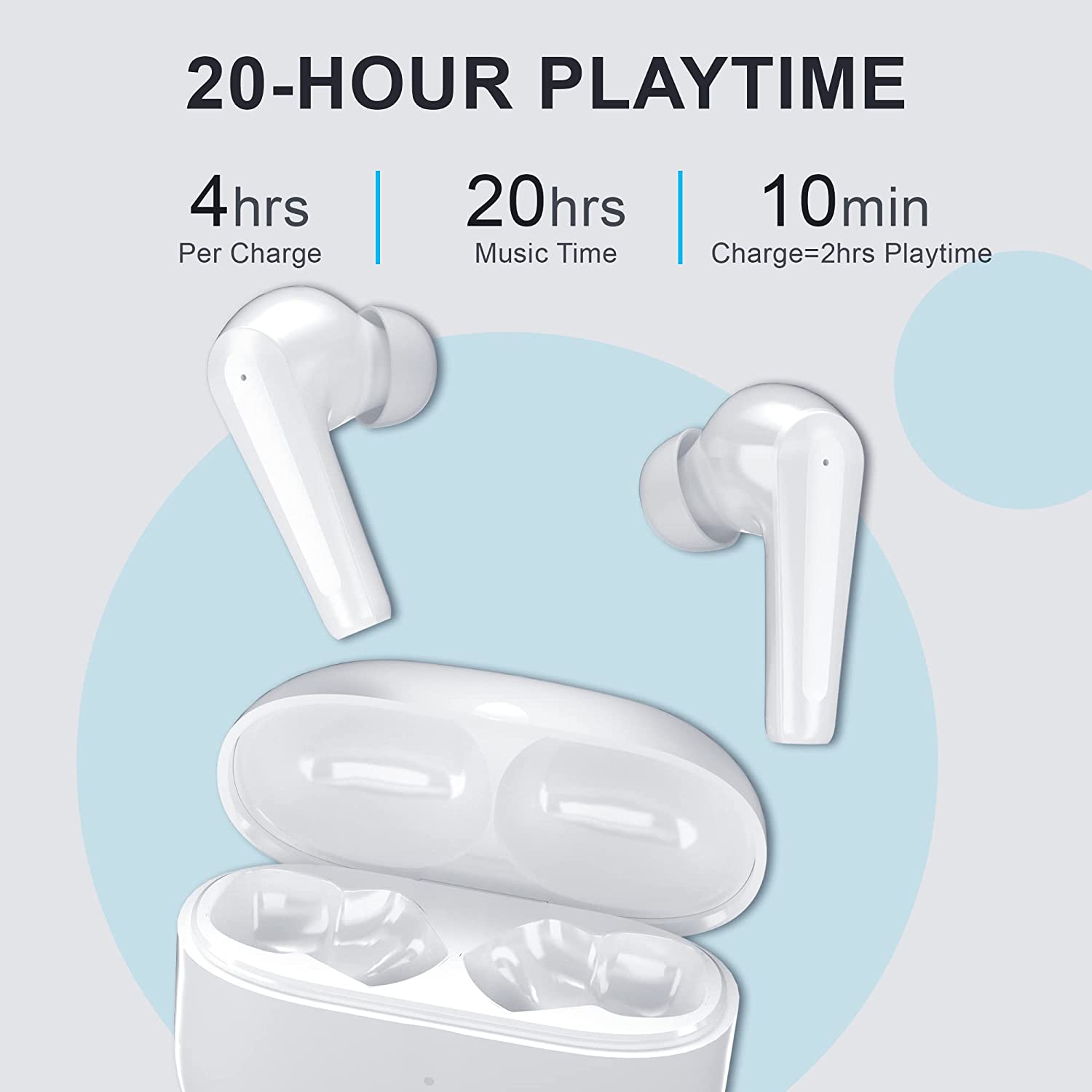- ♫【20 hours of battery life】: A single earphone could be used for 3.5 hours, and the charging box could provide 20 hours of battery life for the earphones. Could provide you with music all day long. USB C charging gives 2 hours of playback in just 10 minutes. It only takes 90 minutes to charge the charging case from 1% to 100%.