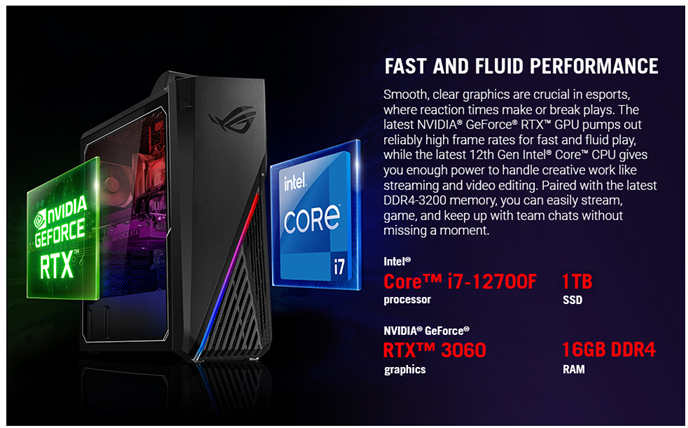 ROG Strix G15 Gaming Desktop PC, Intel Core i7-12700F, GeForce RTX 3060 12GB, 16GB DDR4 RAM, 1TB PCIe 4.0 SSD, Windows 11 Home, G15CF-AB766