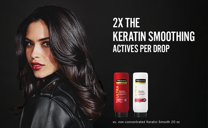 TRESemmé Ultra Keratin Smooth Concentrate System delivers salon-level smoothness and shine in 30 seconds and transforms frizzy hair. This shampoo and conditioner system delivers 2X more washes* and contains 2X the keratin smoothing actives per concentrated drop.