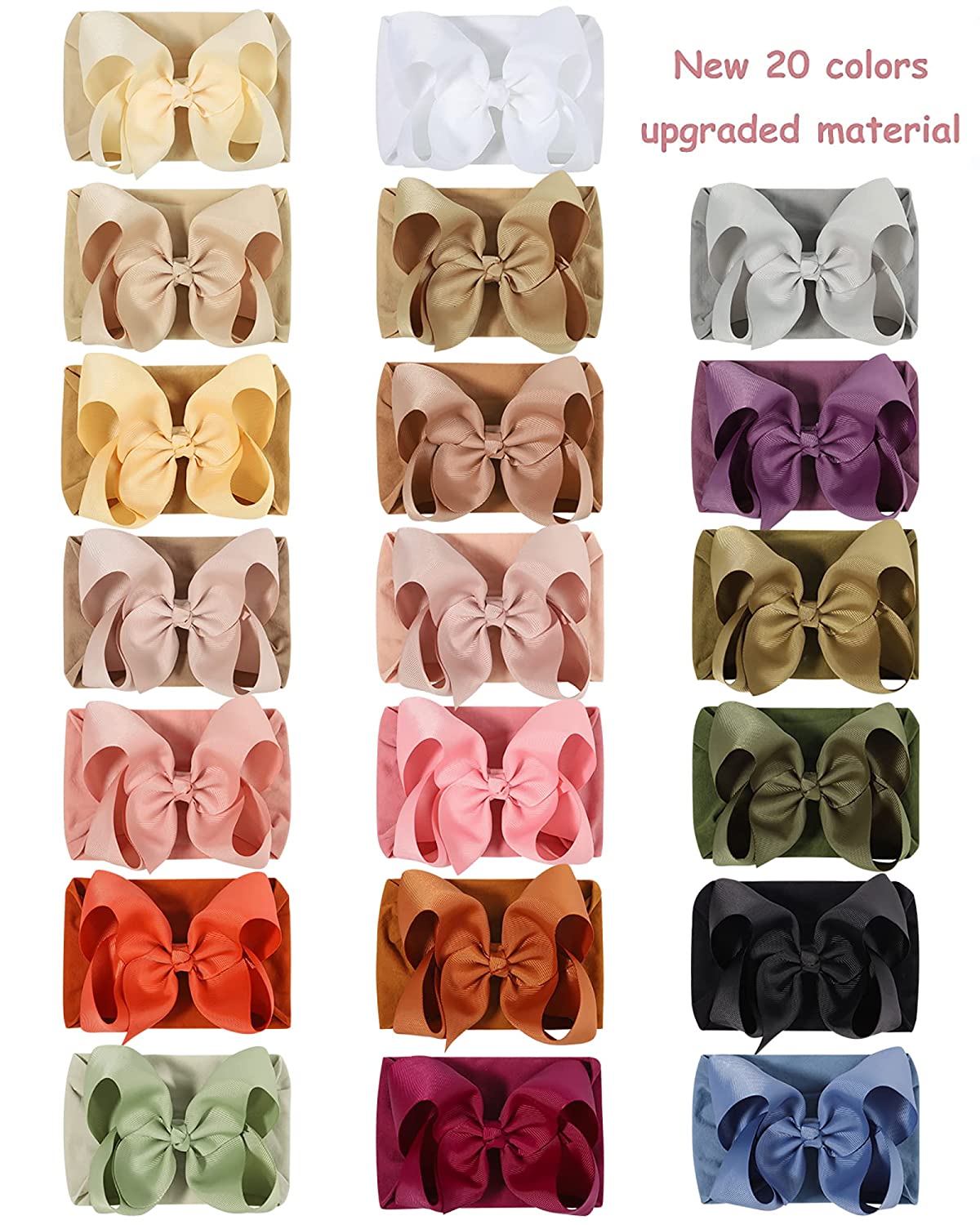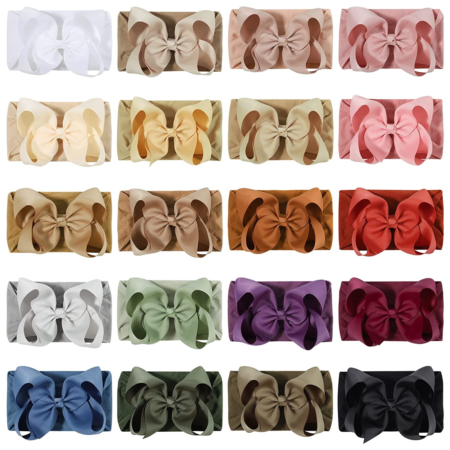 doboi 20pcs Baby Girl Bows Baby Headbands 6Inches Hair Accessories Infant Newborn Toddler Baby Bows and Nylon Headbands Big Bows for Baby Girls