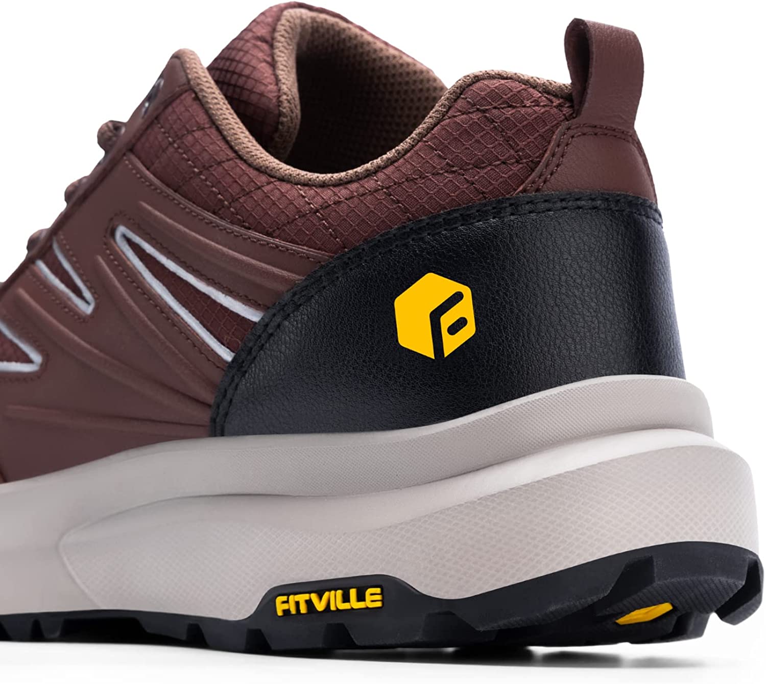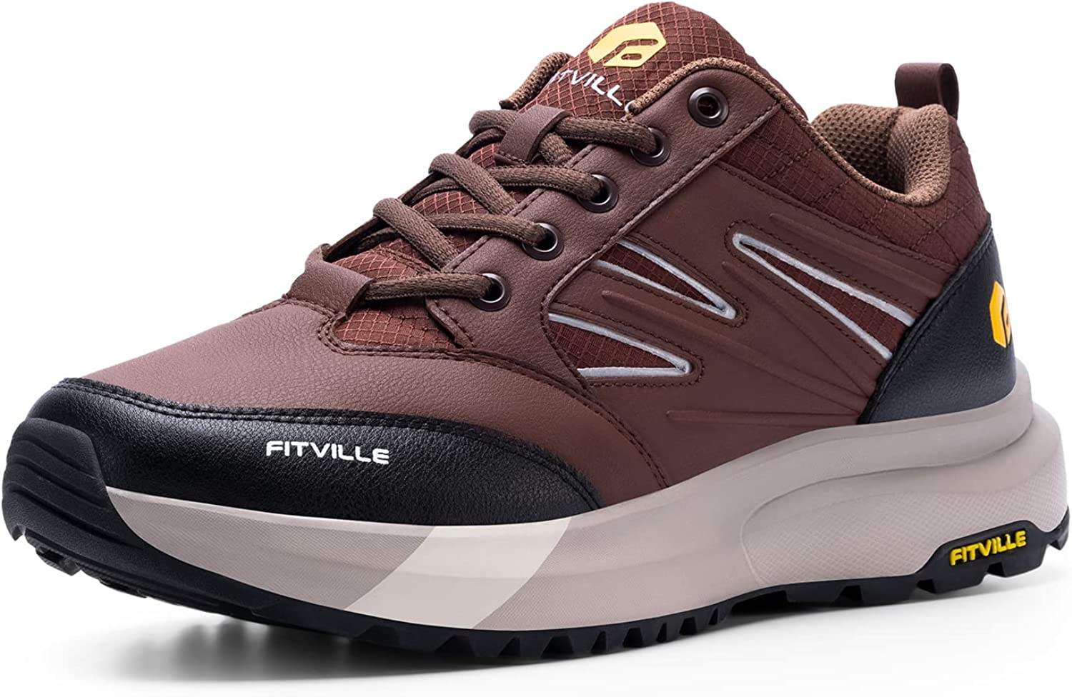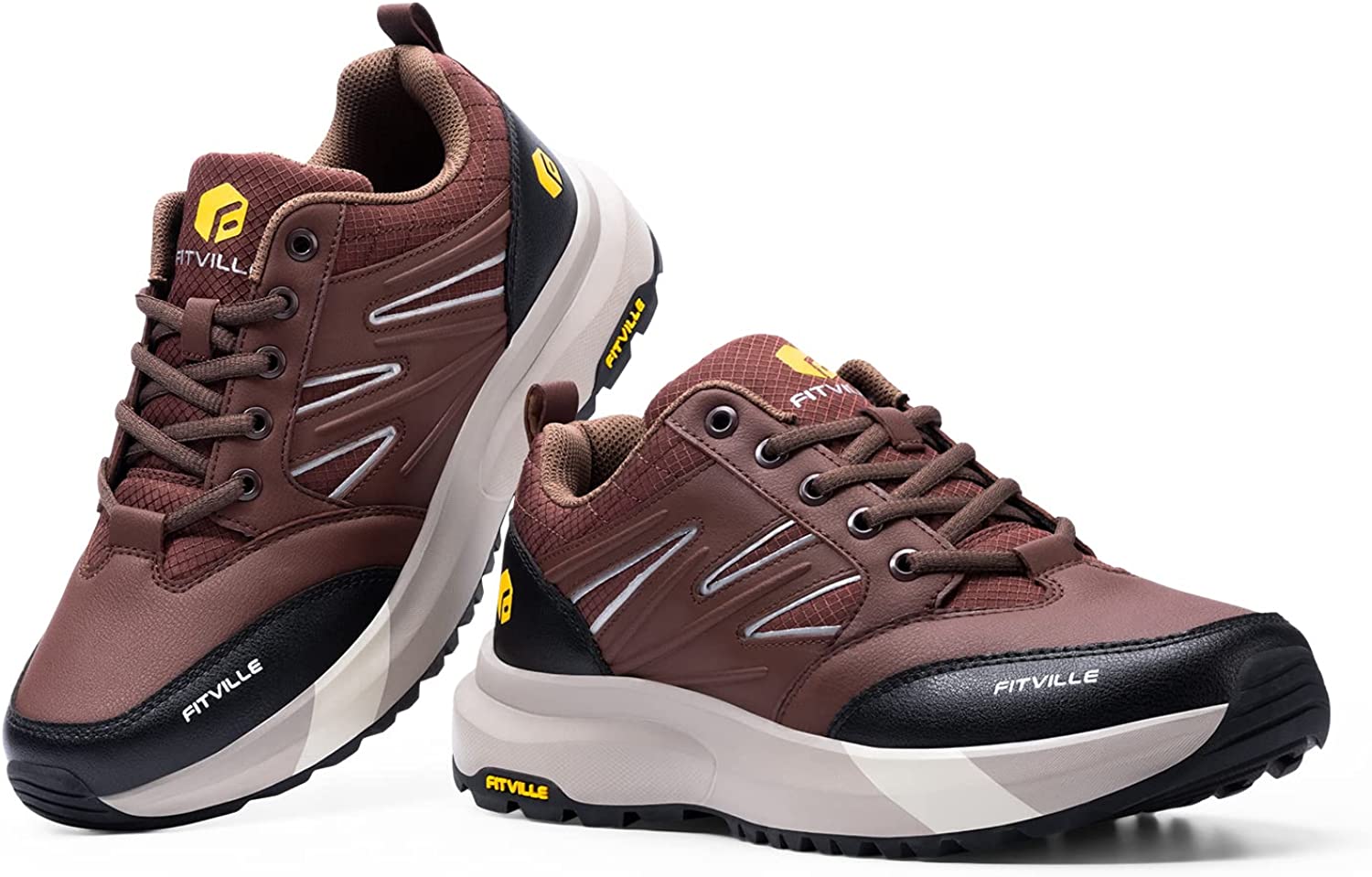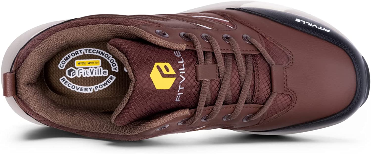 FitVille Mens Wide Hiking Shoes Waterproof Outdoor Work Shoes Trekking Trails Sneakers with Arch Support for Heel Pain Relief - Sturdy Core