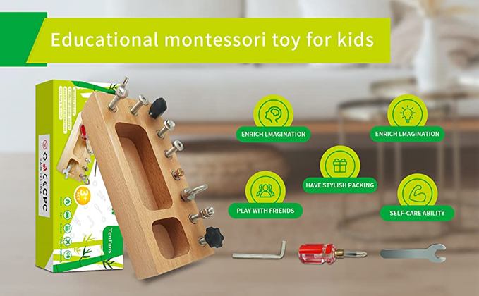 • 【Montessori toys】This montessori screwdriver board designed by Italian Americans is perfect for preschool learning. This wooden toys perfectly accord with the Montessori approach. This toddler toy enables toddlers to learn the practical life skill of using a screwdriver, working with various tools, and holding the keys correctly while playing, gaining joy and confidence. It also helps push toddlers to explore and solve problems.