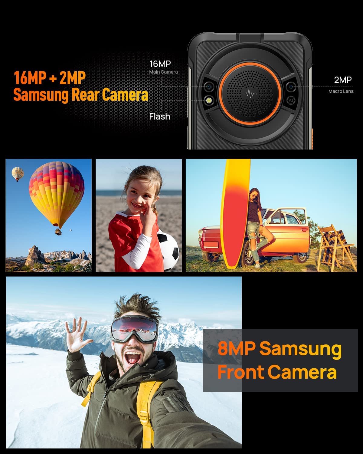 • ?【IP68 Waterproof Dustproof Drop-proof】: Ulefone Power Armor 16 Pro rugged phone meet IP68 &IP69K waterproof and MIL-STD-810G, could work underwater within 1.5m depth for up to 30 minutes, anti-drop height reaches 1.5m, and 99%against dust, dirt, and sand. With a wide operating temperature range of -20°C to 50°C, can handle the different outdoor environments.
