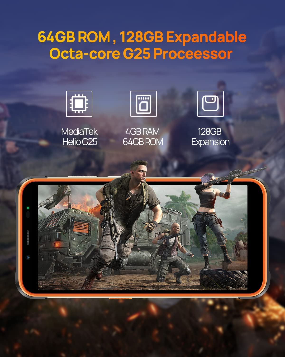 • ?【Android 12 4GB+64GB/128GB SD】: Latest Android 12 OS provides a personal and simple user interface and protect your privacy and safety. Powered by MediaTek Helio G25 Octa-Core processor, provide you powerful and stable performance, smooth multitasking. With 4GB RAM + 64GB ROM storage (expands to 128GB).