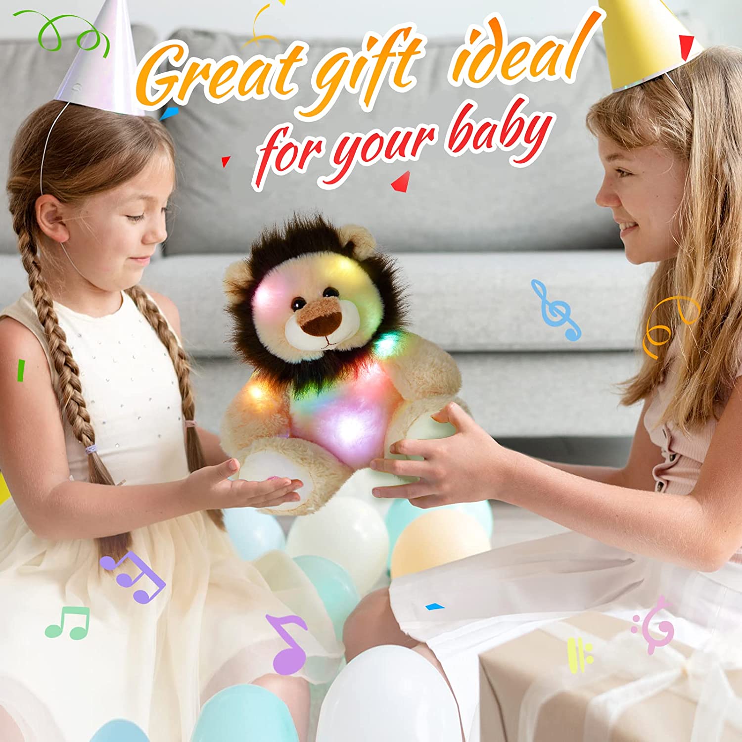 10 LULLABIES INSIDE-There are 10 nursery songs inside the lion stuffed animal: Mary Had a Little Lamb, Rain Rain Go Away, Twinkle Twinkle Little Star, Five Little Monkeys, Hickory Dickory Dock, The Wheels on the Bus, Do Re Mi, Fishing Fishing, If You are Happy and You Know It. All of the sings are sung by clear voice, your kids can learn to sing with the lovely friend. Play with the lion during the day and at night.