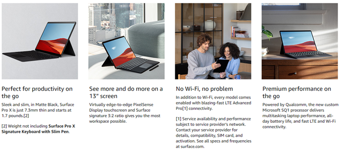 • Perfect for your on the go lifestyle — sleek and slim, in Matte Black, Surface Pro X is just 7.3mm thin and starts at 1.7 pounds