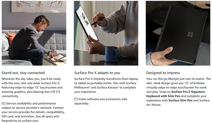 • Ultra slim and versatile design. Surface Pro X adapts to you, transforming from the ultra thin laptop, to powerful tablet, to portable studio