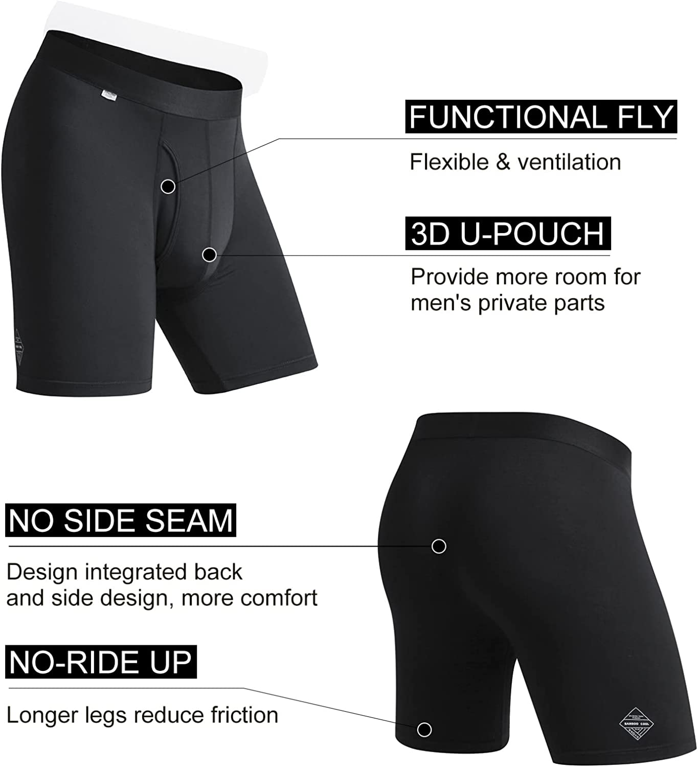 BAMBOO COOL Man Underwear Fly Front with U-Pouch Men's Boxer Briefs Soft Tag-Free Bamboo Viscose Trunks stretched Boxers