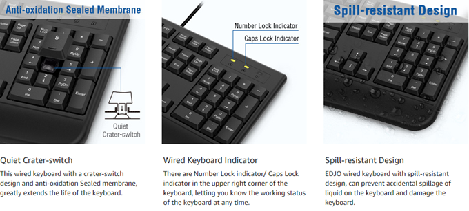• 【WIDELY COMPATIBLE AND 12 MONTHS WARRANTY】EDJO wired keyboard and mouse combo is widely compatible with Windows XP/Vista/7/8/8.1/10, Mac and other operating systems. Suitable for Desktops, Chromebook, PC, Laptop, Computer, and more. Our product has 12 month's warranty, if you encounter any problems with the product, please contact us via email, we will provide you with excellent after-sales service.
