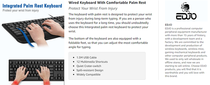 • 【104 KEYS LAYOUT AND ERGONOMIC DESIGN】EDJO full-sized wired keyboard is ergonomically designed with palm rest and foldable stand that can make it typing more comfortable. Anti-slip design on the bottom of the keyboard can prevent the keyboard from moving while typing, which is more stable to use.