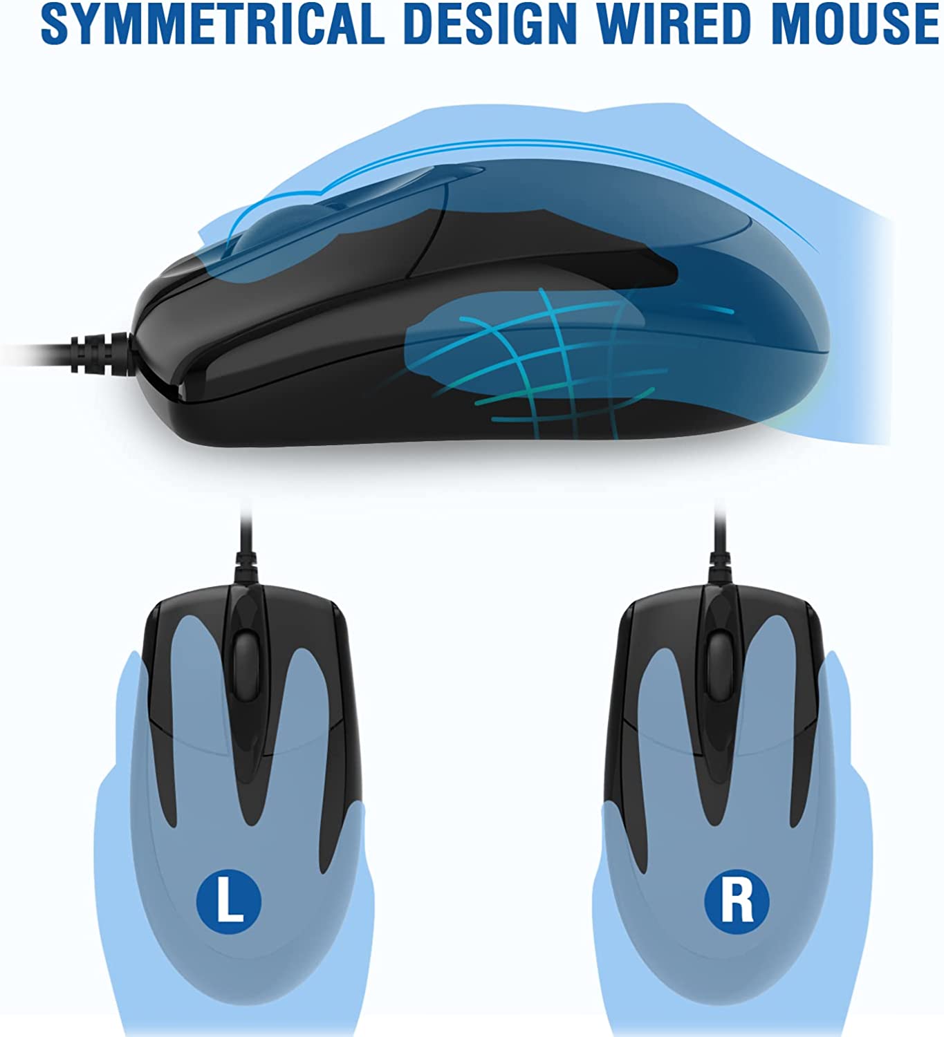 • 【OPTICAL WIRED MOUSE】This is a optical wired mouse that can works well on a smooth surface even without a mouse pad. The mouse is symmetrical design,suitable for all users, very comfortable to hold, keeps your hands relaxed even after long time of work.