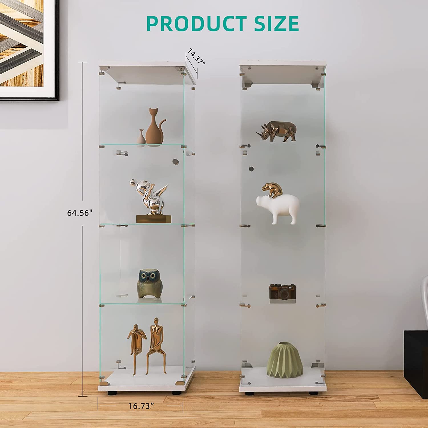 High Quality&Safe:FANYUSHOW 4-shelf glass display case is constructed with high-quality tempered glass and solid wood boards. Tempered glass is thicker than ordinary glass, has stable structure.There are bumper strips between glass plates for safe opening.