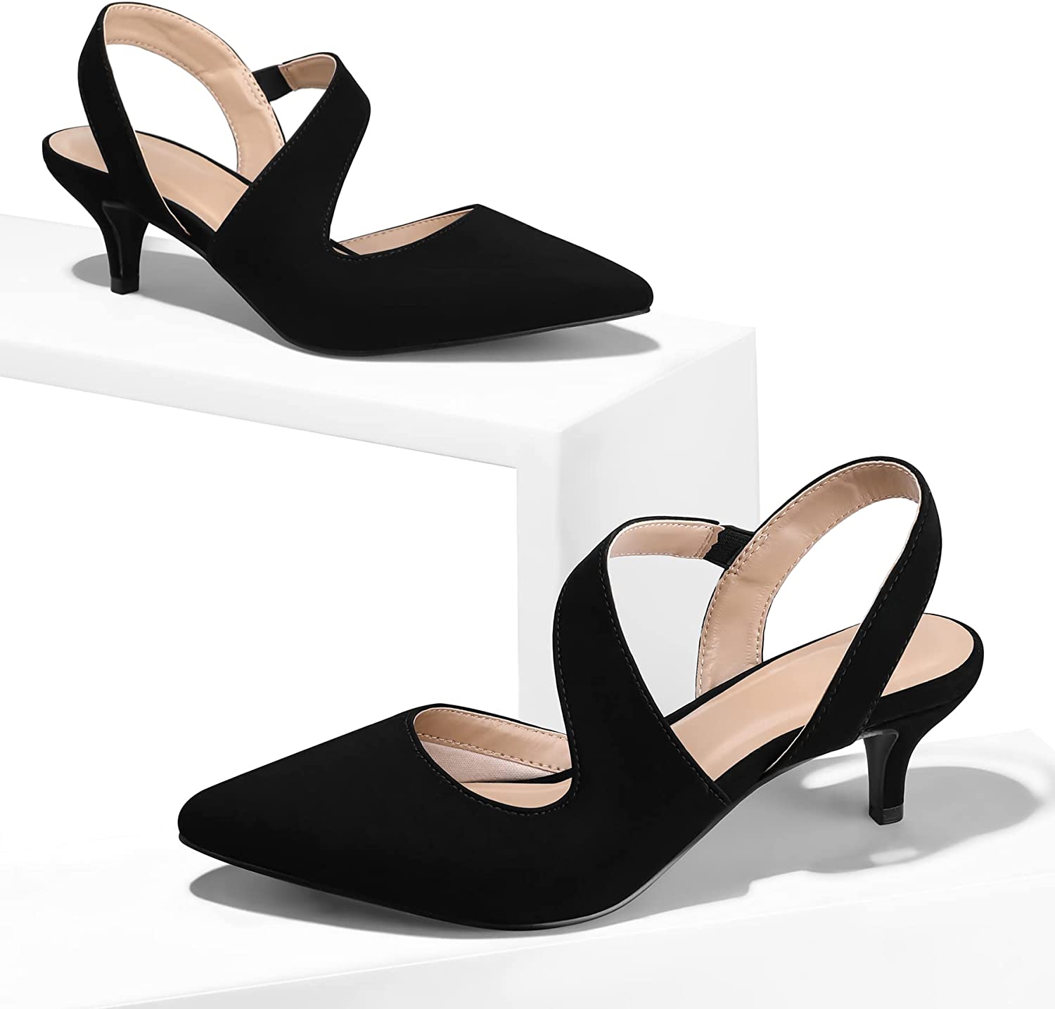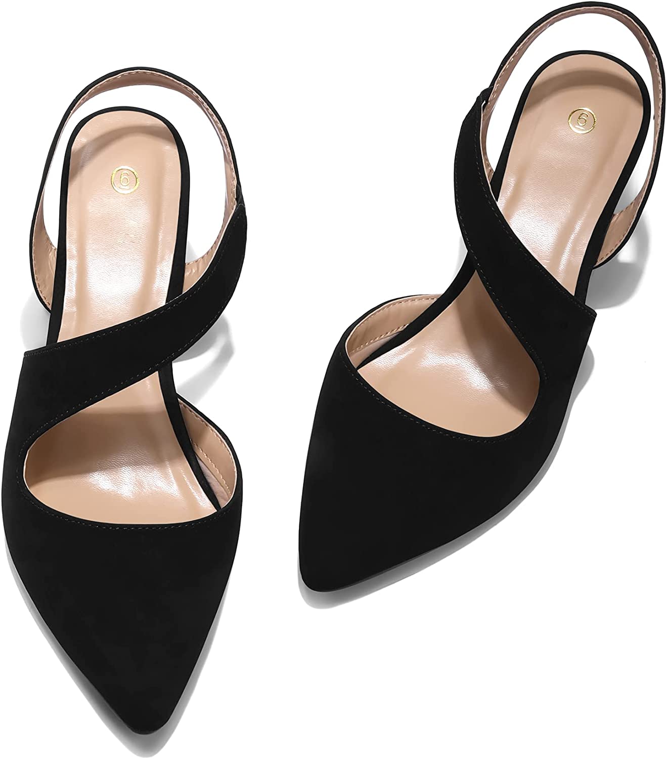 • FASHION: Women's lady pumps with slingback design and classic pointed toe create the illusion of longer legs. Slip into a relaxed and exquisite state of mind with these pumps.
