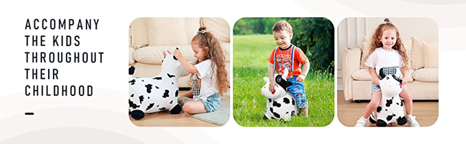 • AN INTERESTING & GREAT GIFT: Our cute bouncy house are popular among kids and make a great gift for any occasion. Kids can ride on cow like knights to fight bad guys (this is just role play), and the cute bouncy hopper will be a good friend to your child, accompanying them from day to night and bringing them fun. Our pretty hopper comes in exquisite packaging, making it a perfect gift for kids.