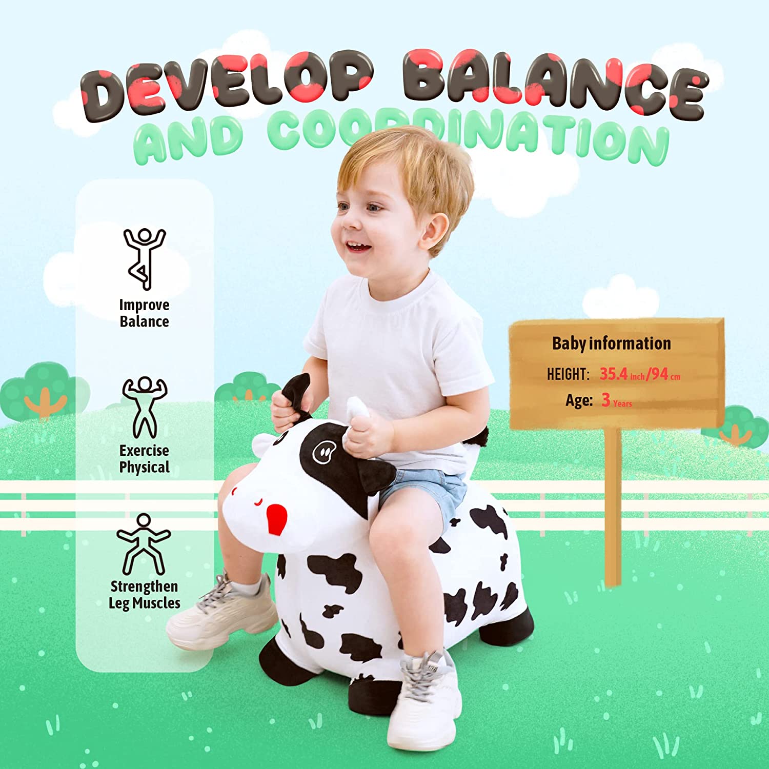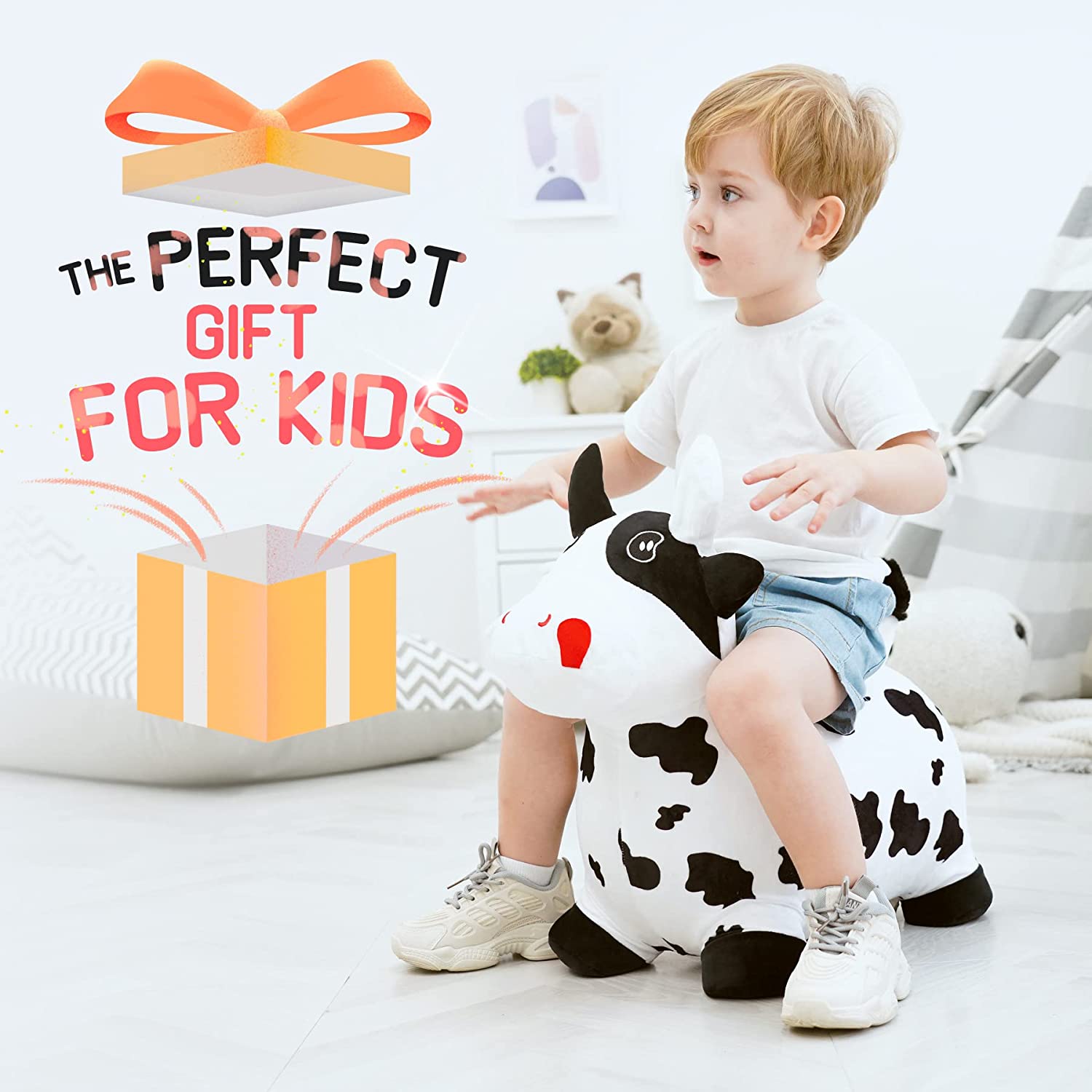 Bouncy Animals,Bouncy Horse,Hopping Toy,Bouncy Cow with Plush Covered,Hopper Toys for Kids,Gift for 18 Months