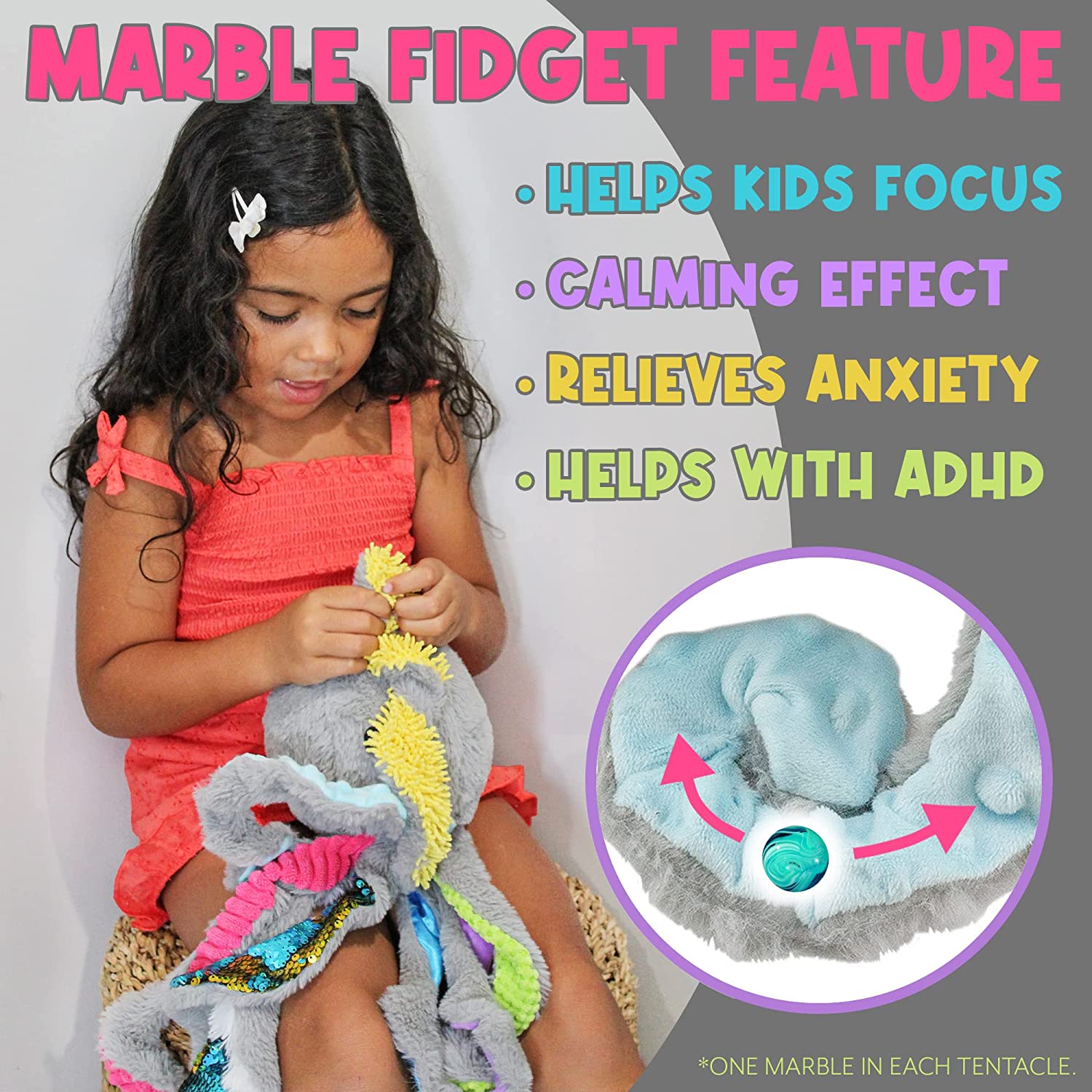 • FIDGET FUN: Designed for fidgety fingers and hands, each of the sensory tentacles is expertly crafted with a marble inside so your child can happily fidget by pushing the marble up and down. Fidgeting helps your child focus and has a calming effect.