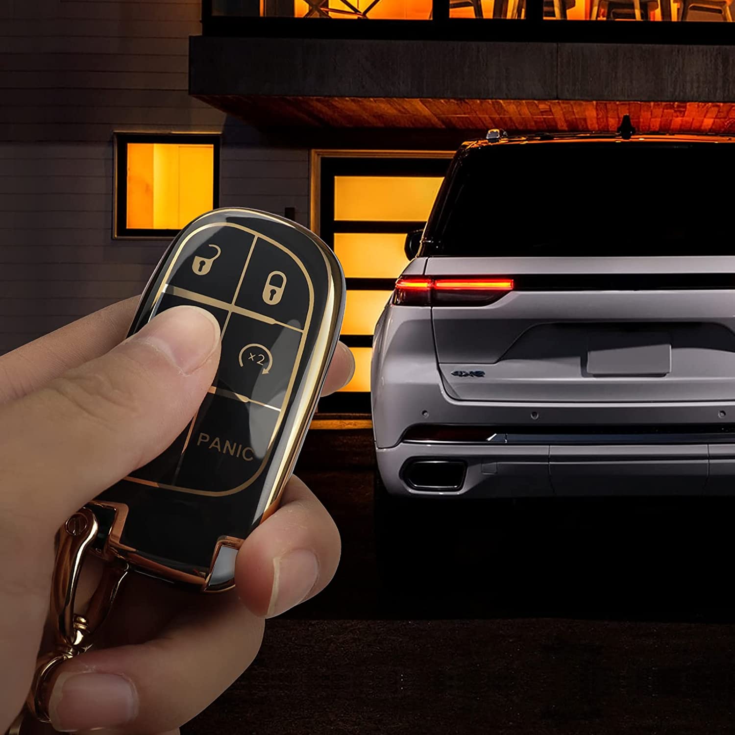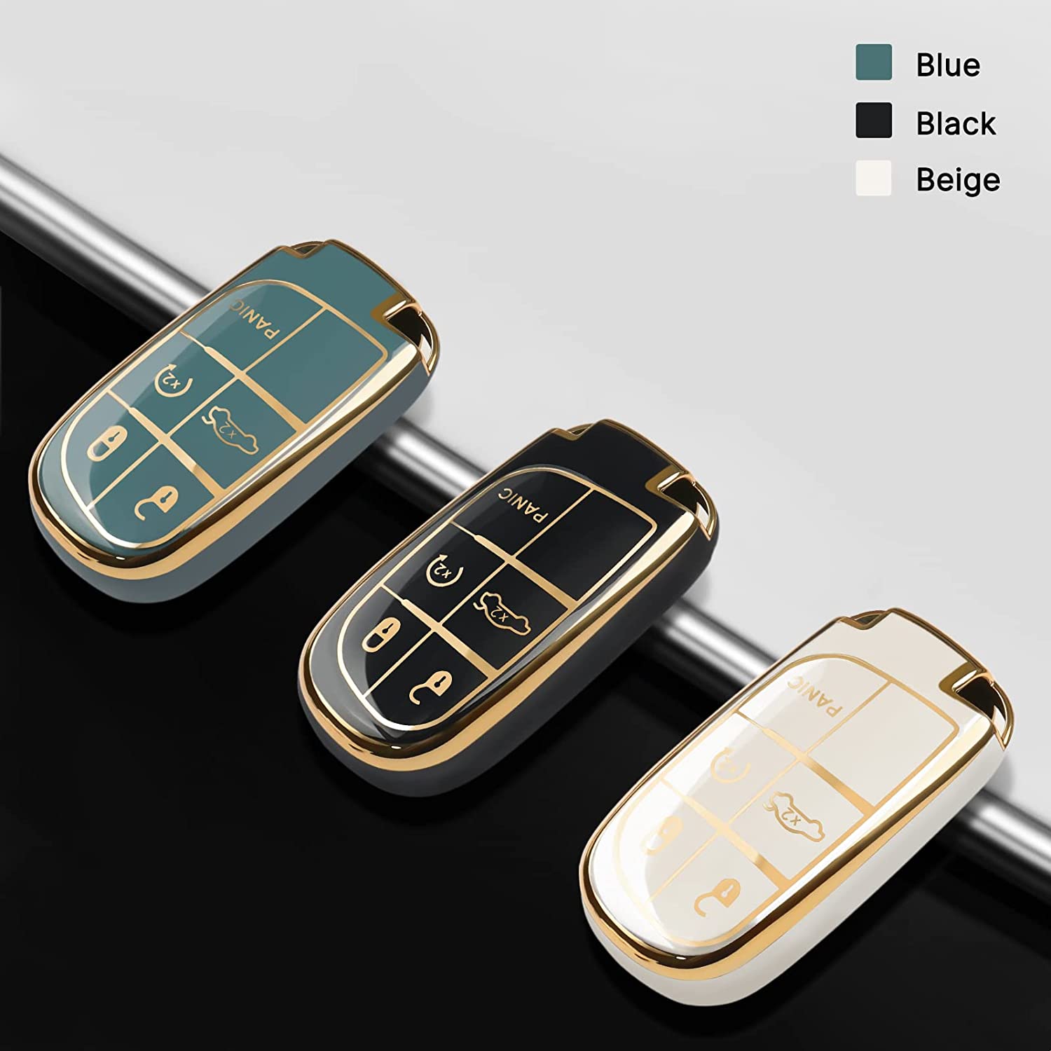 【Fit Models】This key fob cover is fit for Grand Cherokee Renegade Chrysler 200 300 Dodge RAM Durango Charger Challenger Journey Dart Fiat etc entry remote control smart key fob. Note: Please DOUBLE CHECK Your Key Shape before placing the order.
