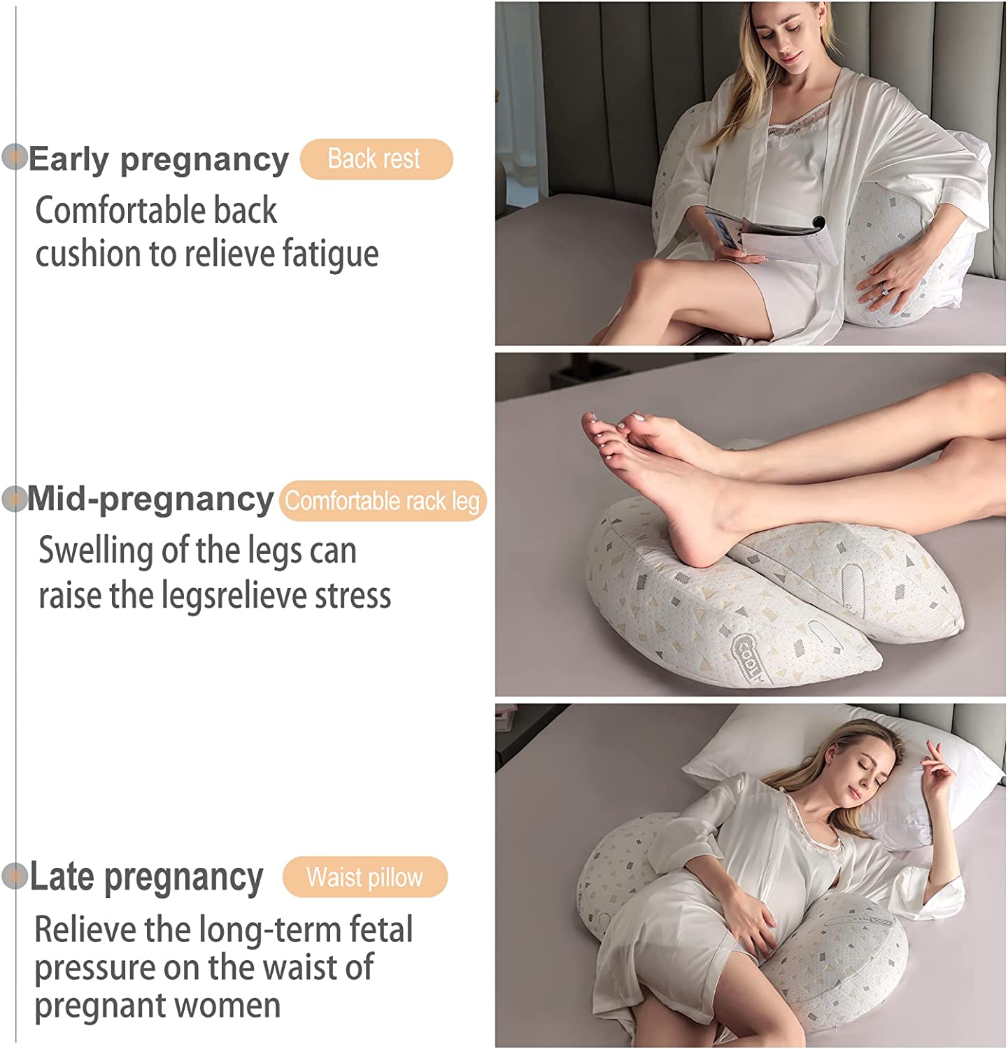 Emachi Pregnancy Pillow for Pregnant Women, Soft Pregnancy Body Pillow, Pillow Used to Support and Relieve Pain or discomfort in The Waist, Abdomen and Buttocks, Detachable Grey.