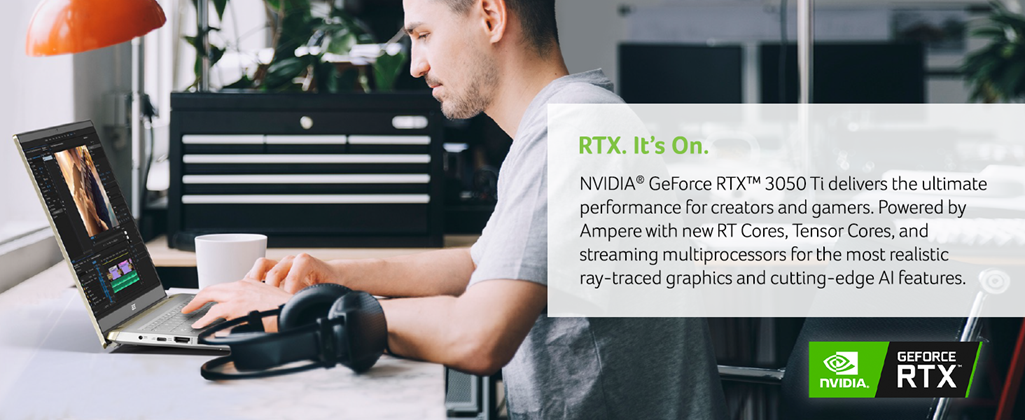 • RTX, It's On: The latest NVIDIA GeForce RTX 3050 Ti Laptop GPU (4GB GDDR6 VRAM) is powered by award-winning Ampere architecture with new Ray Tracing Cores, Tensor Cores, and streaming multiprocessors supporting DirectX 12 Ultimate for incredible creativity