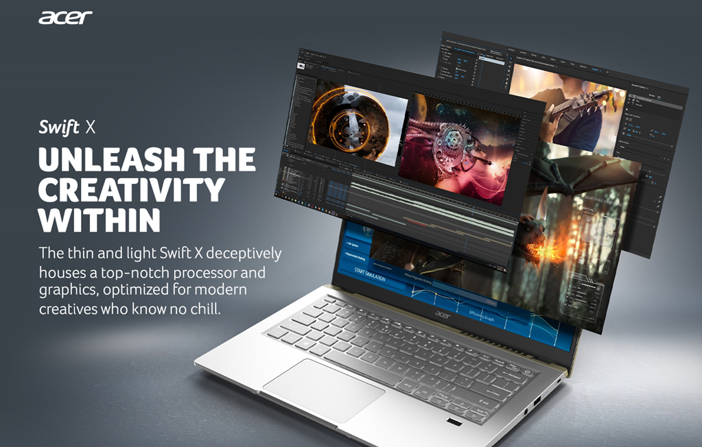 • Made to Move: At just 3.06 lbs, this Acer Swift X laptop is ready to go where you go. The metal design is thin and lightweight, but packs a whole lot of battery power with fast charging capability