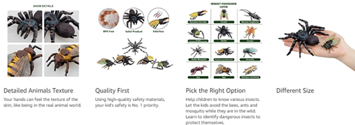 • ✔ SAFETY MATERIAL - TOYMANY Bugs Figures Playset made by high quality durable PVC plastic, Non-Toxic Paint and Odorless. All by safety meterials for kids, all farm figures are solid. TOYMANY aims to produce more realistic animal figurines and provide customers with the better quality.