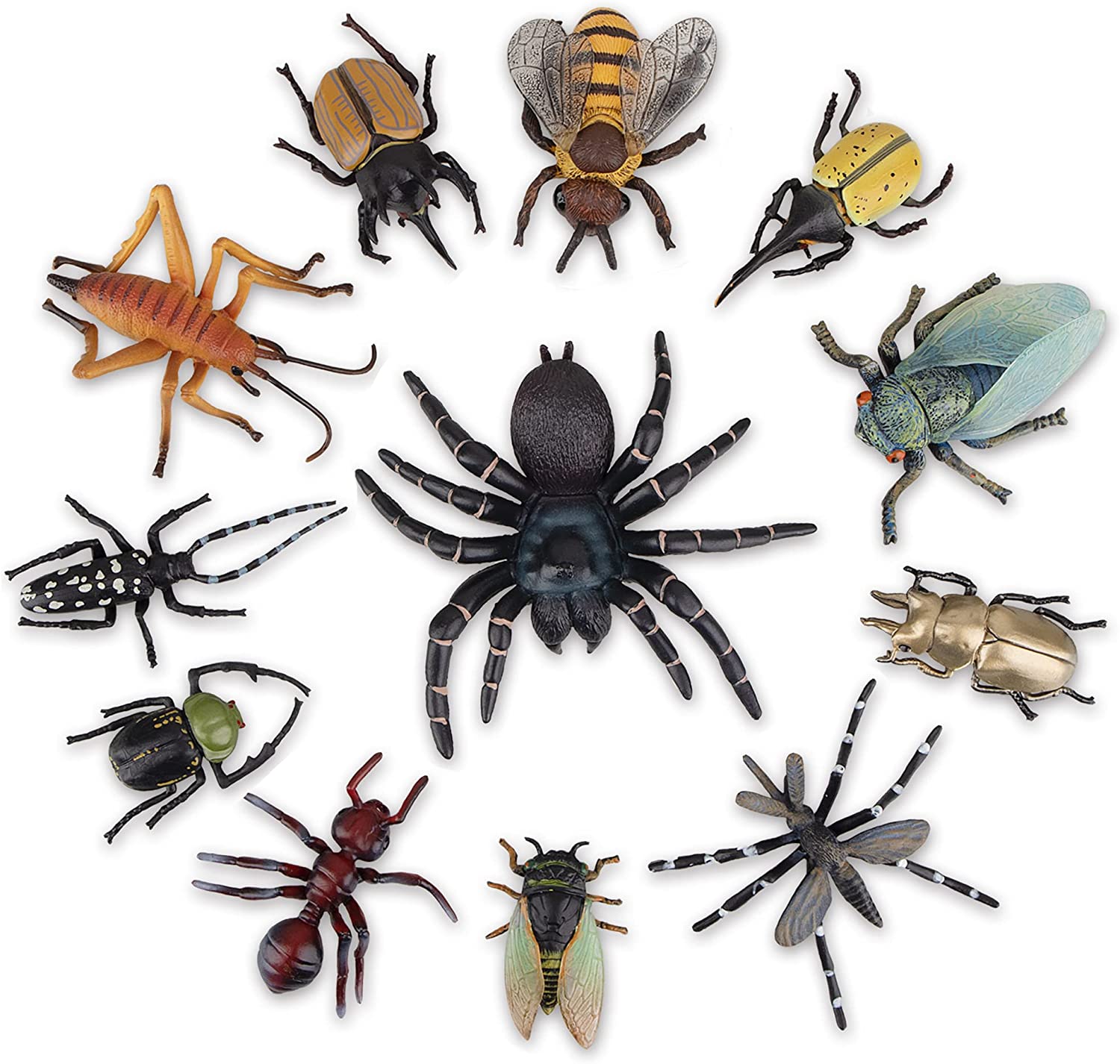 Toymany 12PCS Realistic Insects Figures Toys - Plastic Bugs Figurines Set with Cicada Cricket Scarab Bee Ant Spider - Halloween Party Favor School Project Christmas Birthday Gift for Kids Toddlers