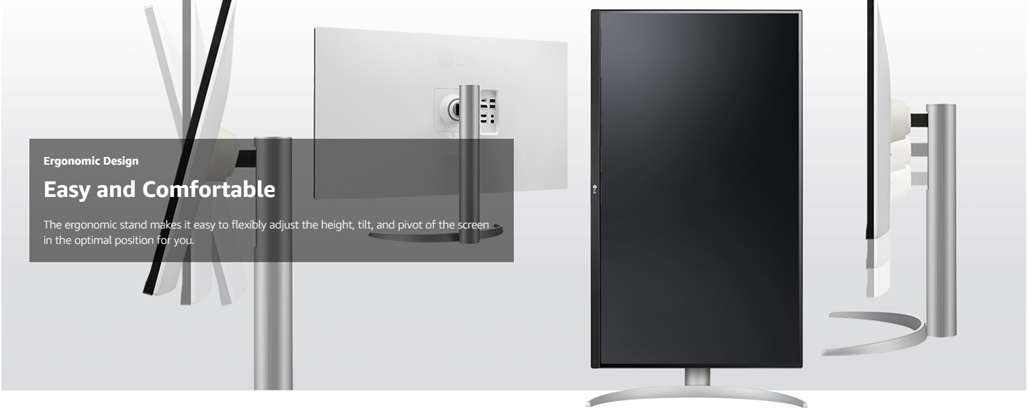 LG UHD 4K monitor with HDR 10 compatibility immerses you in your favorite 4K and HDR content with high picture quality and color reproduction. AMD FreeSync Premium support virtually eliminates screen tearing and minimize stutter in high-resolution and fast-paced games for a fast and fluid gaming experience with supported video cards. Dynamic Action Sync reduces input lag and elevates your gameplay, allowing you to respond to your opponents quickly, while Black Stabilizer allows you to see them more clearly in the dark. Stay in the game as you take fast, easy control of essential monitor settings including picture, audio and Screen Split with just a few clicks of your mouse with On-Screen Control**. Easily adjust the height, tilt, and pivot for the most comfortable position with the ergonomic stand. *DCI-P3 Typical 95%, Minimum 90% **Software download required to enable OnScreen Control. For download details, visit LGUSA.com/OnScreenControlSupport