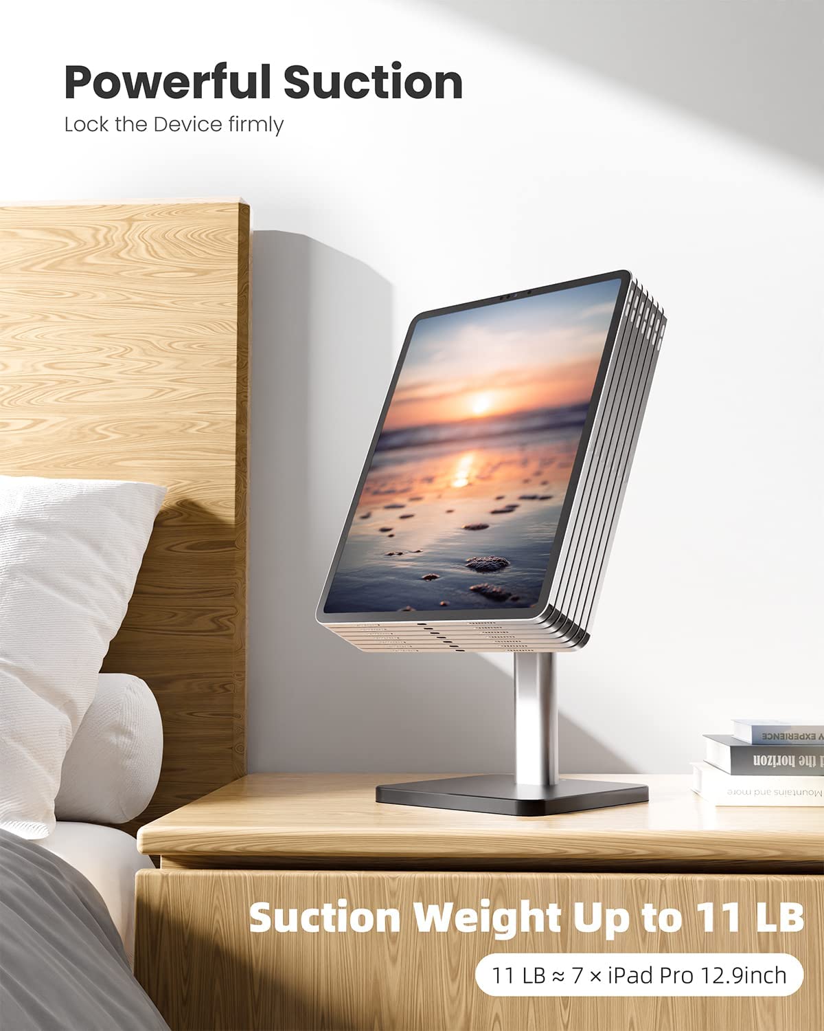 • [Wide Compatibility]: The phone stand mount is suitable for most electronic device, and can be used for tablets & phone from 4" to 12.9". The phone holders are also compatible with a wide variety of phone cases. Note:In case of uneven back or air leakage of electronic equipment, please use static stickers to enhance the suction.