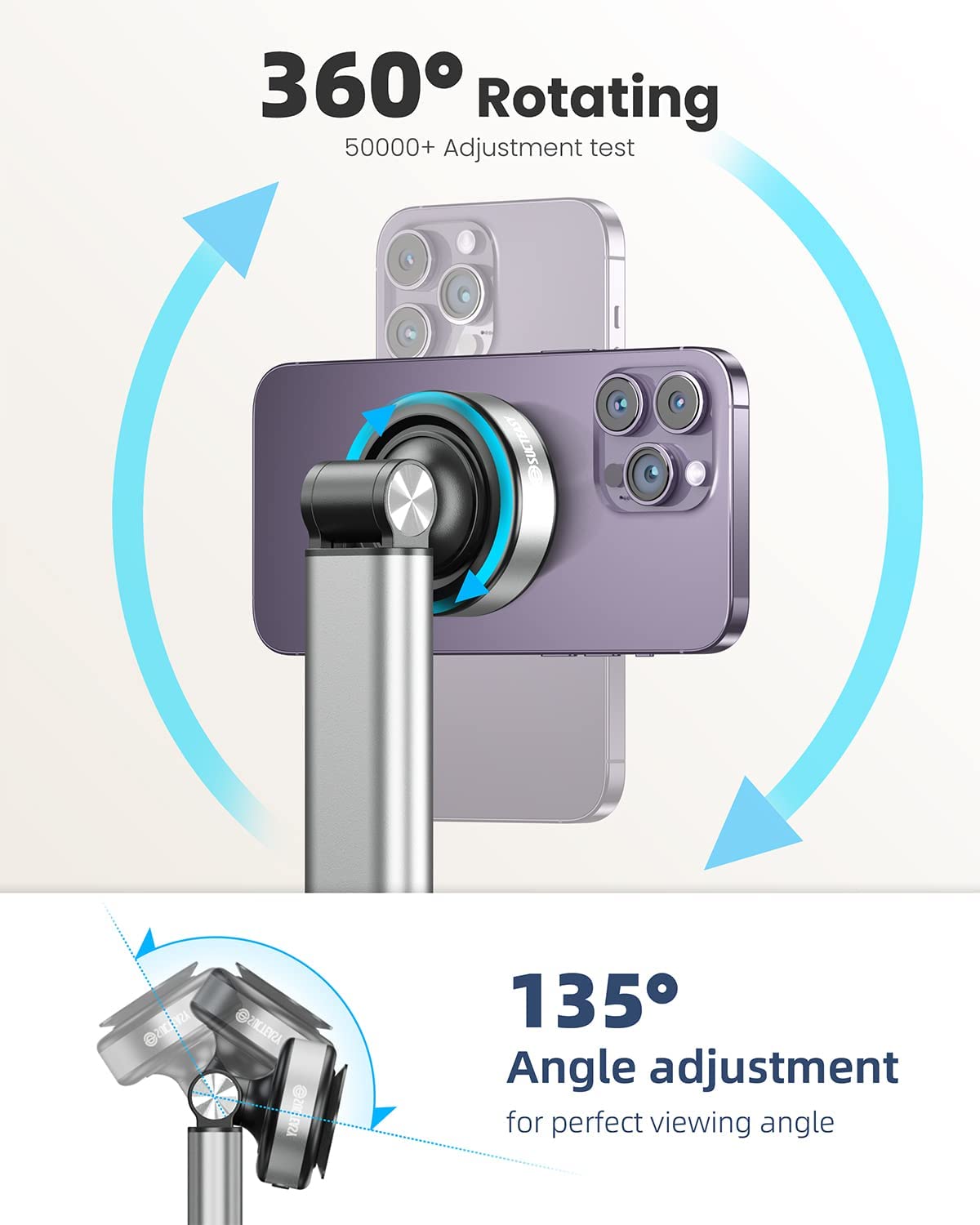 • [Adjustable Angle & Weighted Anti-Slip Base]: Ergonomic ipad stand, when using the mobile phone stand, it can adjust the elevation angle of 135° and rotate 360° to provide you with the best visual experience. in the meantime, the cell phone stand boasts a reinforced base and anti-slip silicone pad at the bottom to hold your devices steadily.