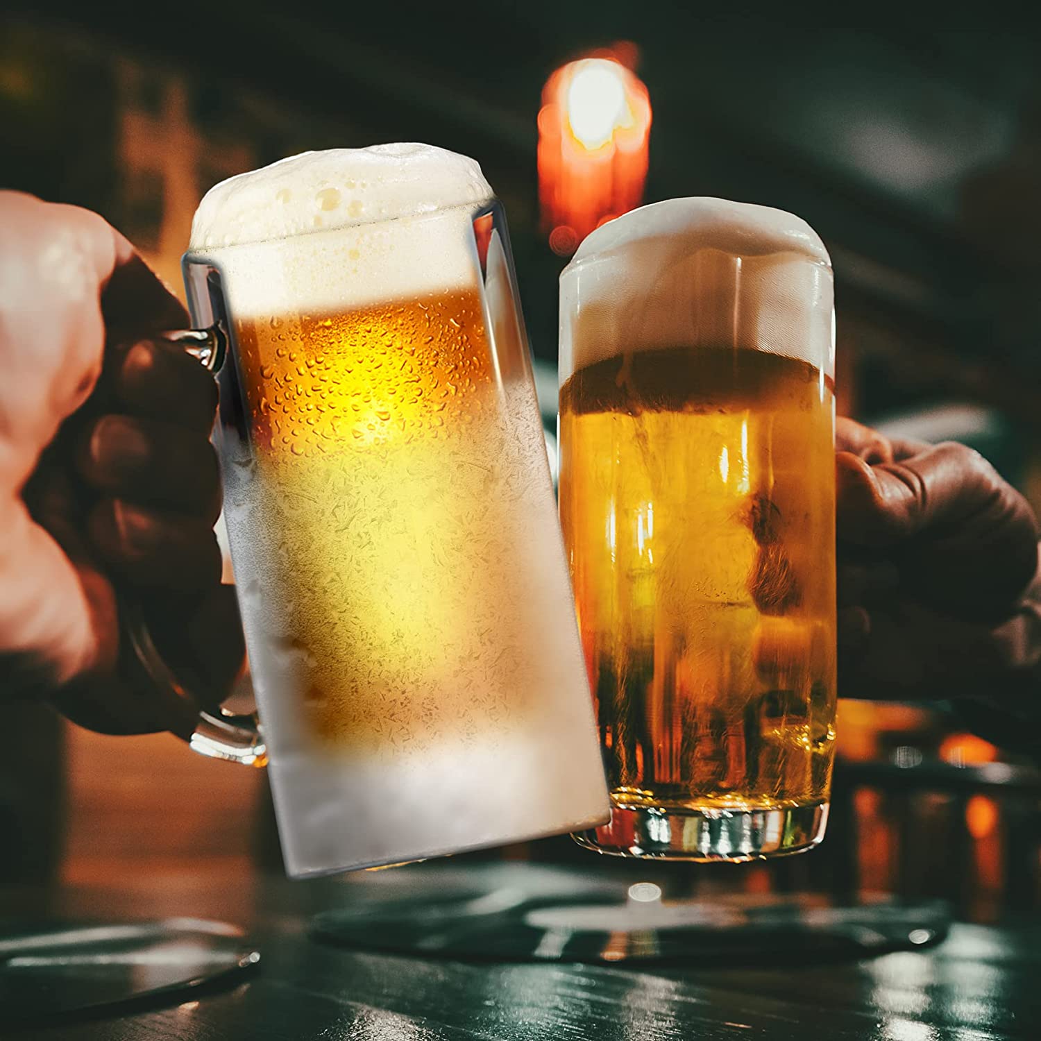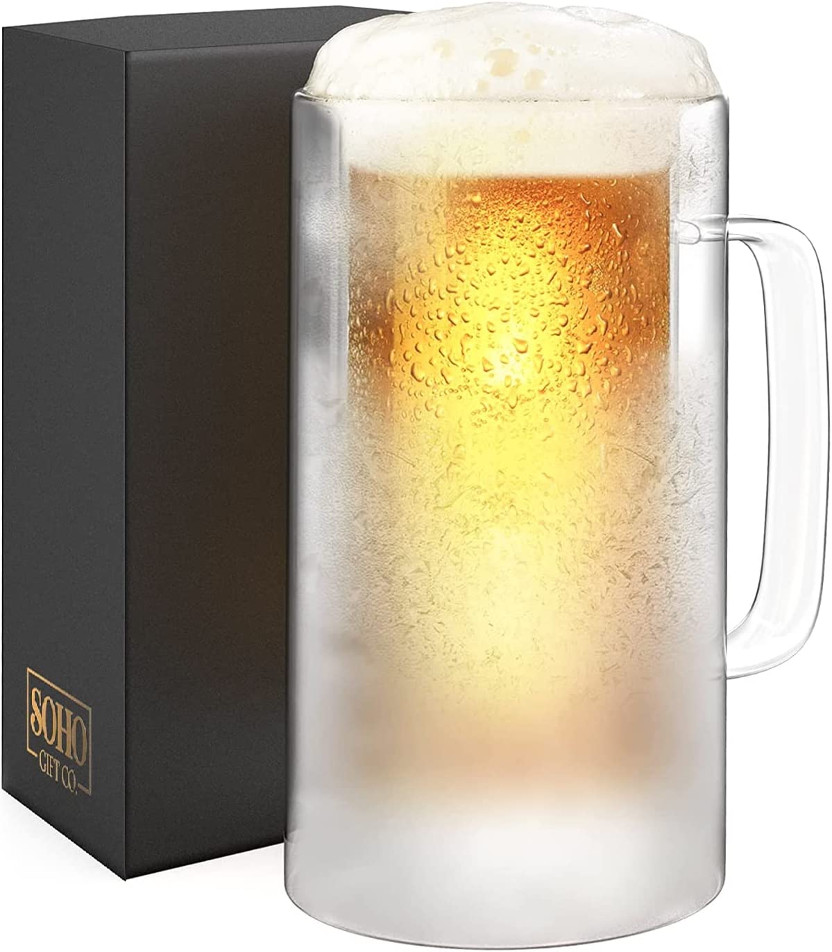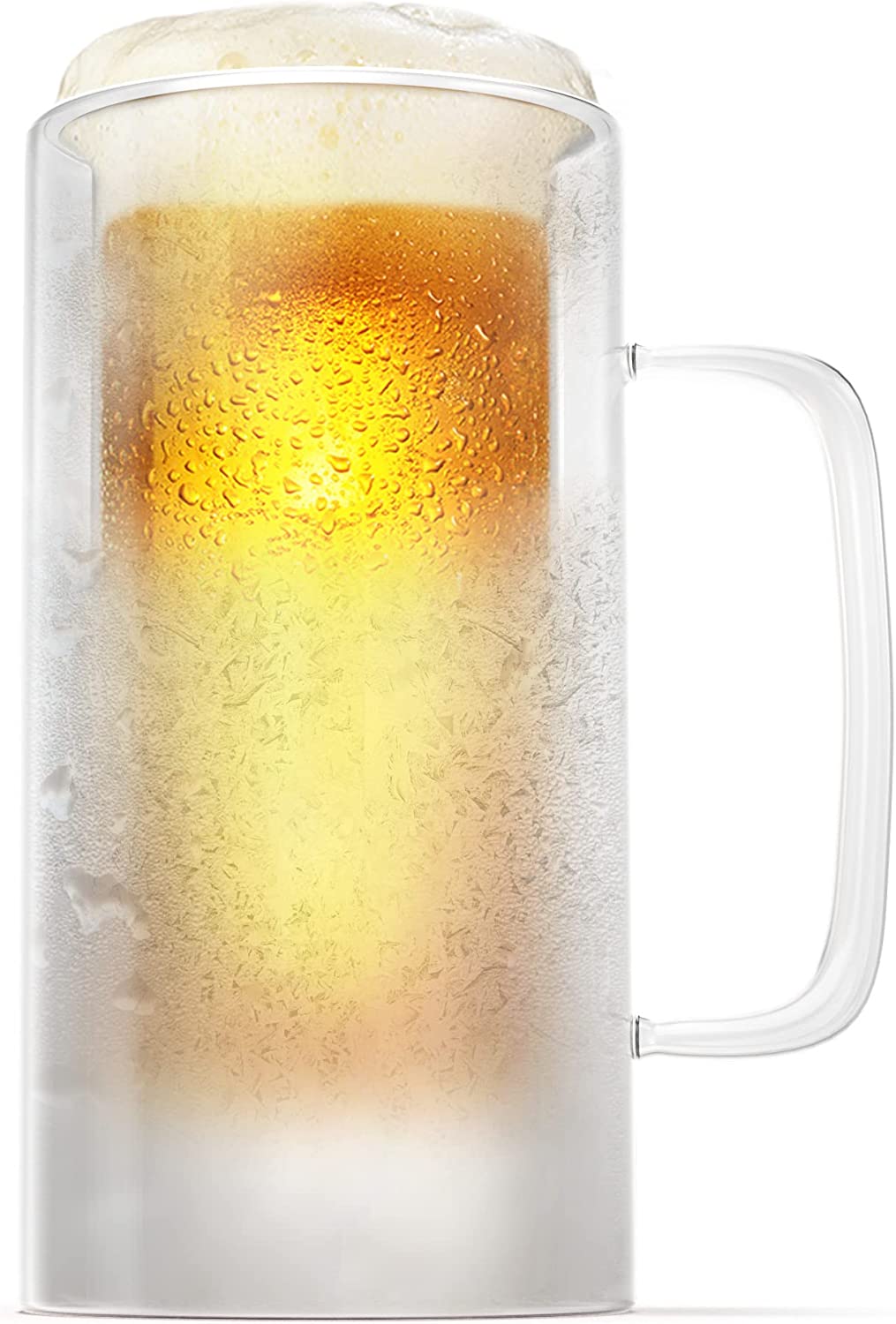 GALVANOX Freezer Glass Beer Mug with Handle, 1-Pint Freezable Beer Stein Chiller with Ice Wall Liquid-Gel (16oz) Insulated Frozen Drinking Cup Gift for the Man who already has everything (Gift Boxed)
