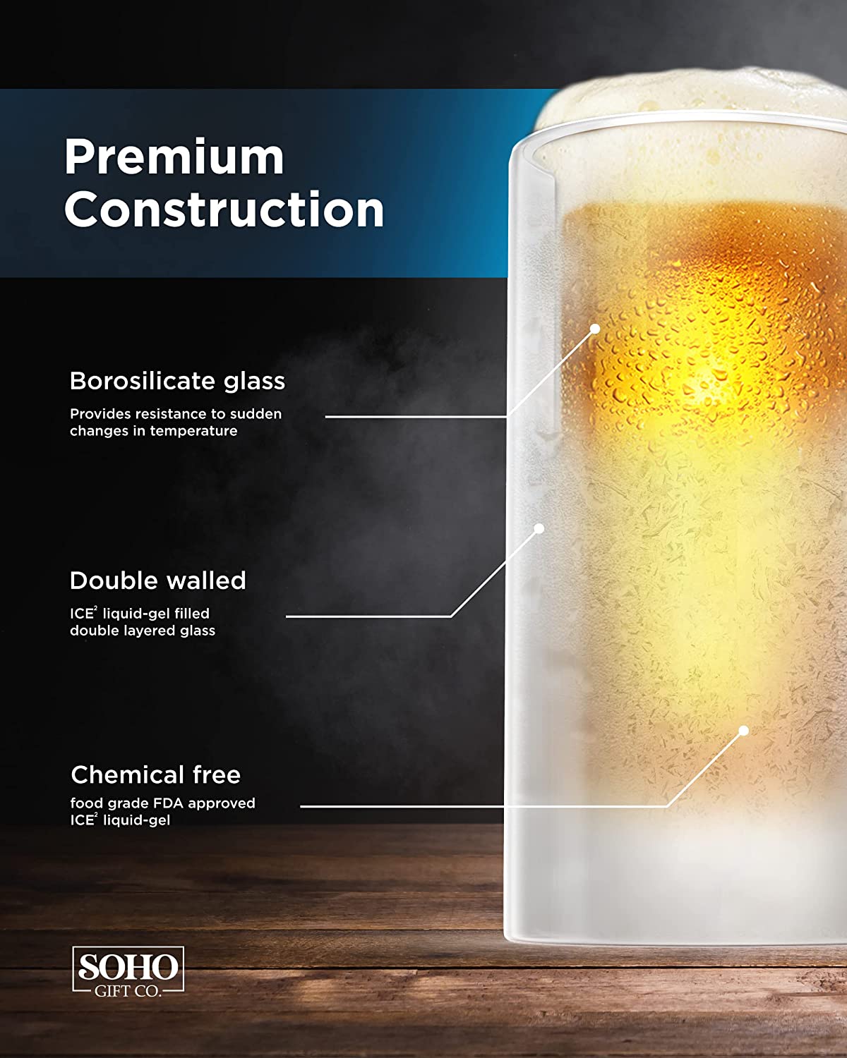 Internal freezer liquid-gel keeps any brew ice cold without dilution! (Recommended freeze time: 3+ hours)