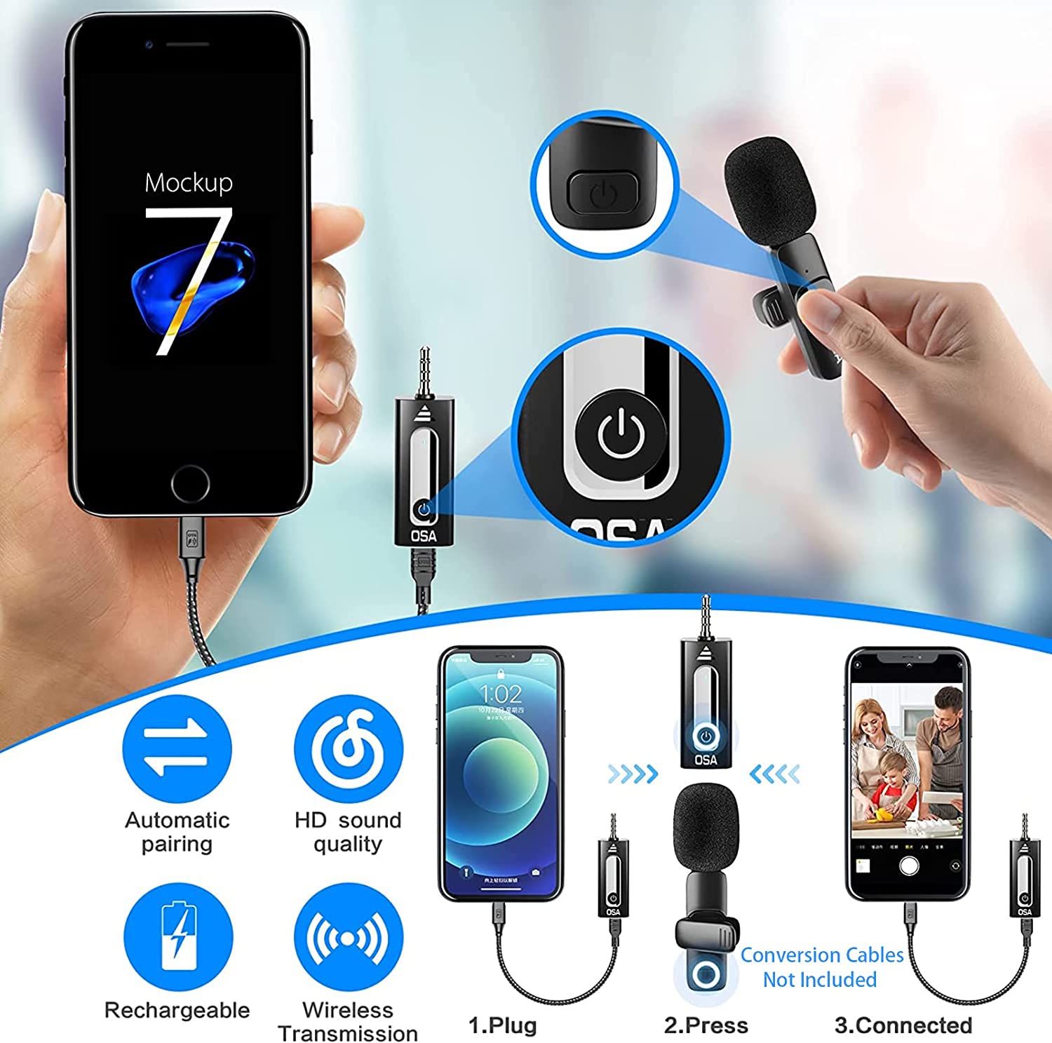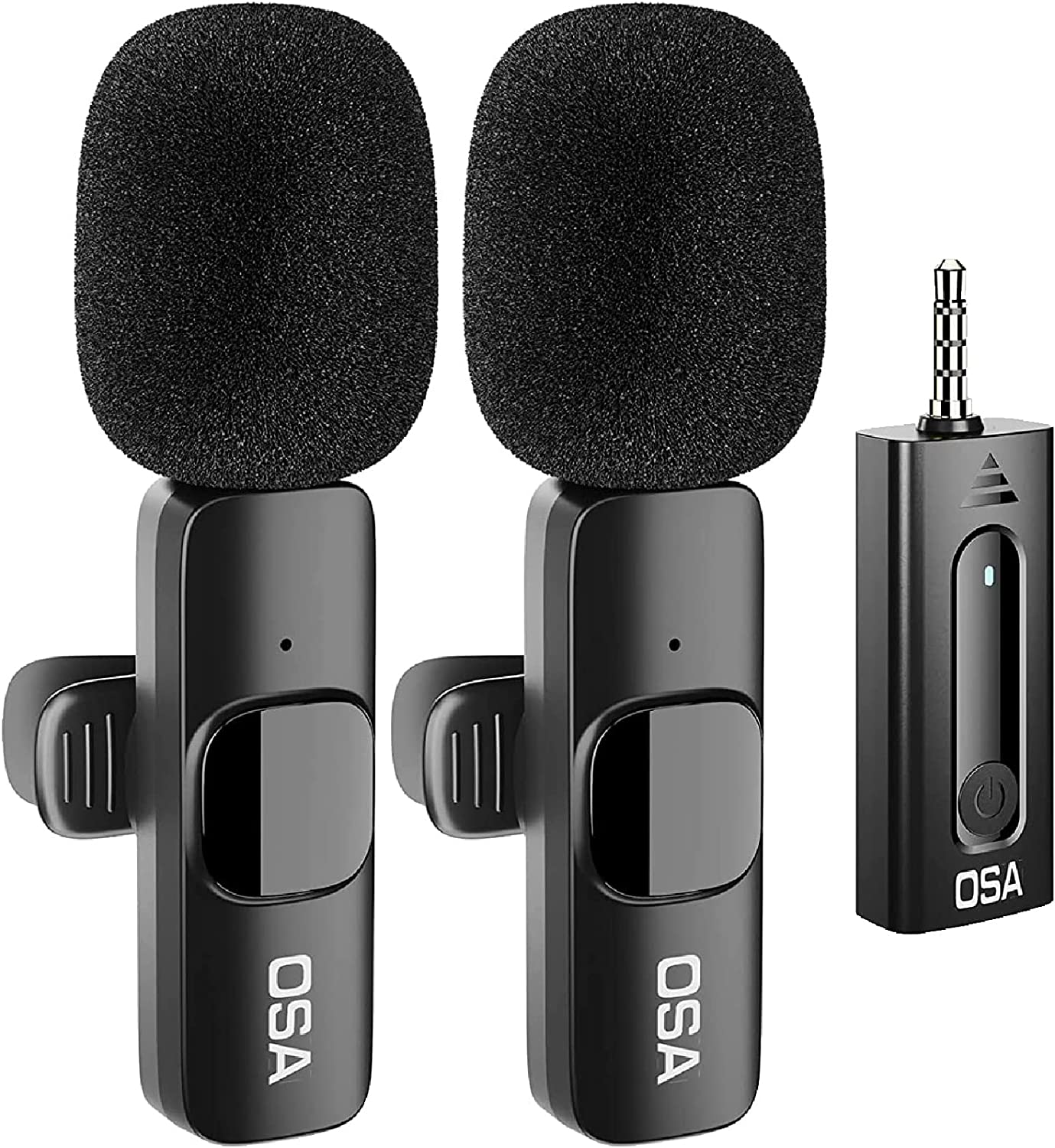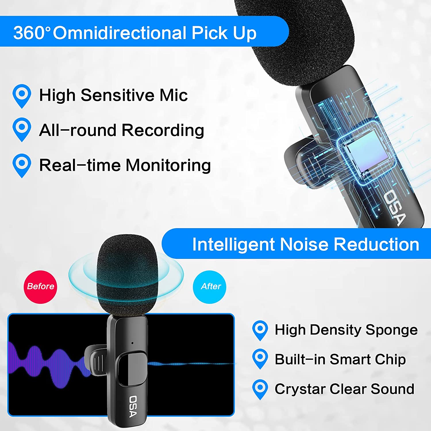 OSA Wireless Lavalier Microphone, Camera Microphone for iPhone, Android Phone, Camera, Clip-on Plug & Play Auto-sync and Noise Reduction for Video Recording, Interview
