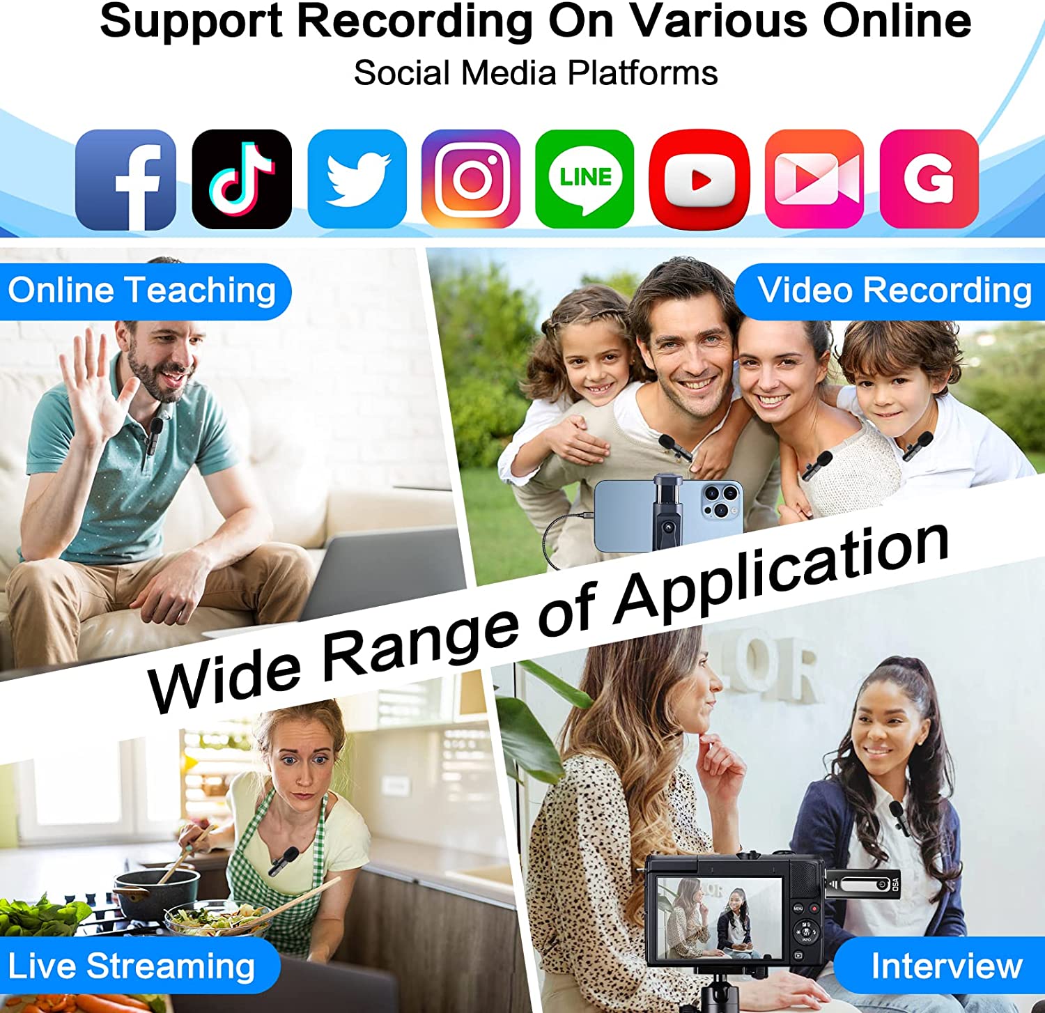 • Rechargeable Battery & Real-time Auto-sync:Our tiny wireless lav microphone transmitter have built-in rechargeable batteries, with working time up to 4-6 hours after fully charged. Using real-time auto-sync technology, 0.009s ultra-low latency, giving you a better user experience. It's suitable for YouTube, Podcast, Tiktok, Studio, Sound amplifier, etc. Come and record your exclusive voice.