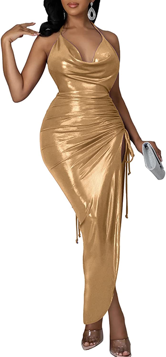• Features: This women bodycon dress features slit thigh, crisscross, self tie back, open back, sleeveless, draw more attention and compliments from the crowds.The design makes you more elegant. Off shoulder design shows your sexy clavicle. High waist design makes you in perfect body line. It makes you in more long leg in vision.