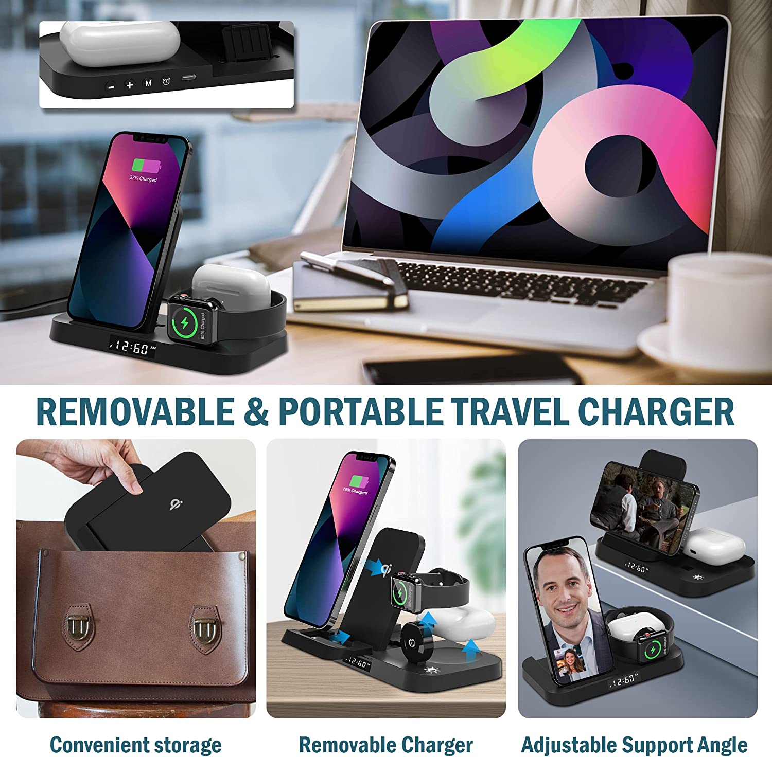 • Portable and Foldable: All charging cables and charging ports are built-in, which keeps you away from messy desktops. All supporting parts and connectors can be folded. The unique design allows you to put the iphone and watch charging station into your pocket easily. It folds up neatly making it good for travel.