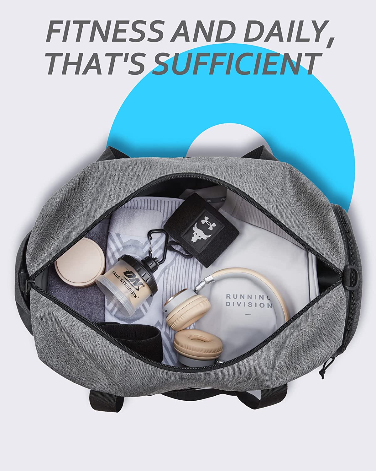 Multi-function Duffle Bag - The padded carrying handle meets the needs of portable use. The detachable shoulder strap allows the gym bag to be switched to a crossbody sports bag at any time depending on usage habits. Integrated luggage strap slides over luggage handle to transform into a perfect carry-on travel duffle bag making airport travel a breeze. Fits in the overhead compartment as well as the under seat as Personal Items in flight.