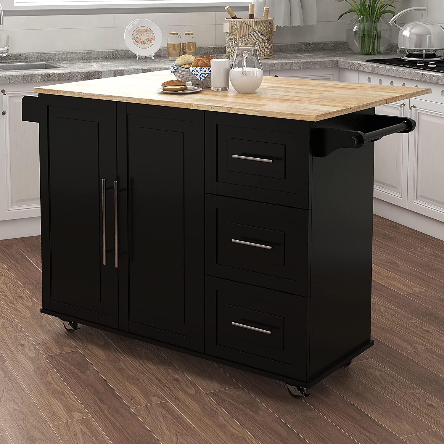 Spacious storage space: with large solid wood countertops, spacious cabinets and 3 storage drawers, spice racks, and towel racks on both sides. Provides you with plenty of space to keep your belongings organized.