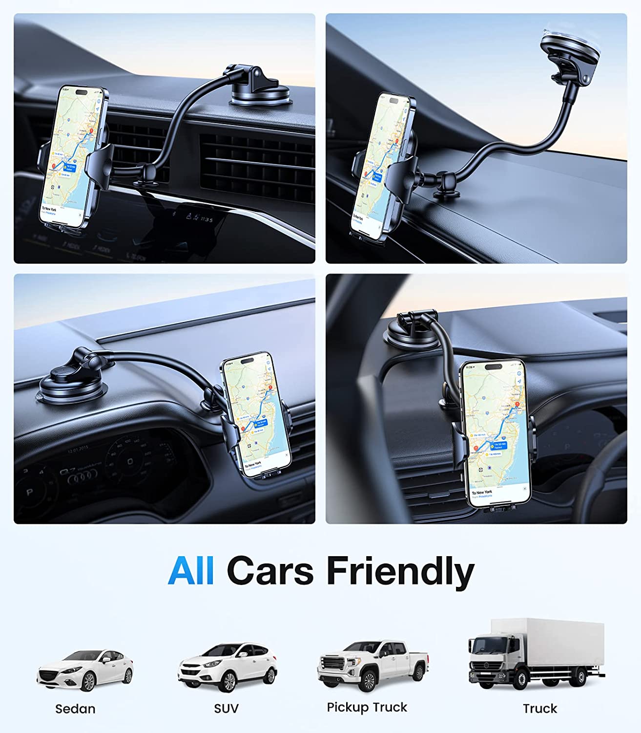 • ?[Ultra Universal, Fits All Cars] Are you not sure which car phone holder mount is better for your car? Don't worry! VICSEED almighty phone mount for car will definitely 100% fit your car. You can always find a place to install it! The flexible long gooseneck can easily bypass the central control screen or other barriers to send your phone close to you. Whether you have a vintage car or new model, electric car, or gas car, this cell phone holder car is the best choice for your car.