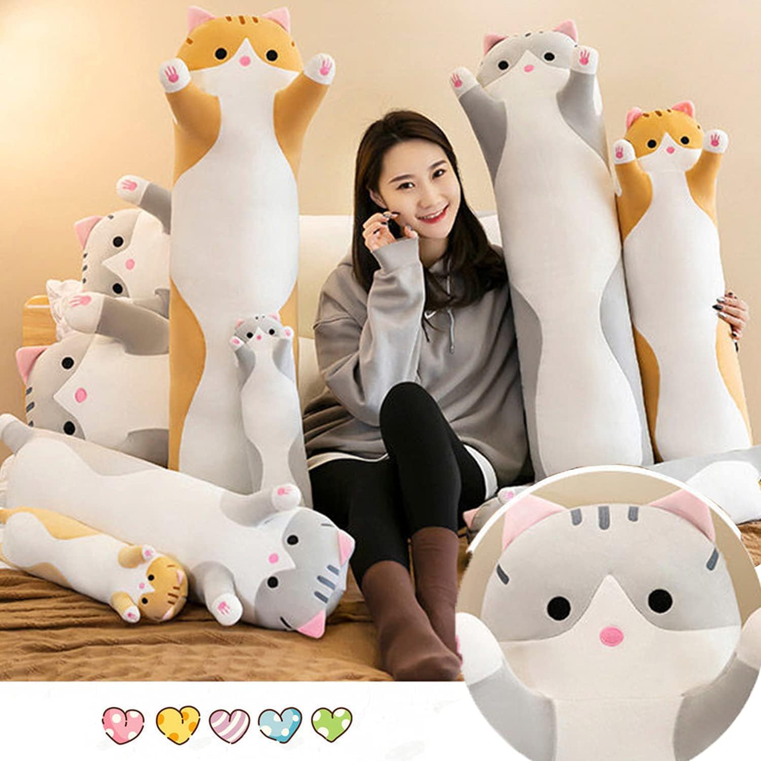Giant Cat Pillow Plush Cartoon Kitty Sleeping Hugging Pillow, Cuddly Soft Long Kitten Body Pillow Doll Cat Cushion Toy for Kids Girlfriend (Gray, 50cm/19.68inch)