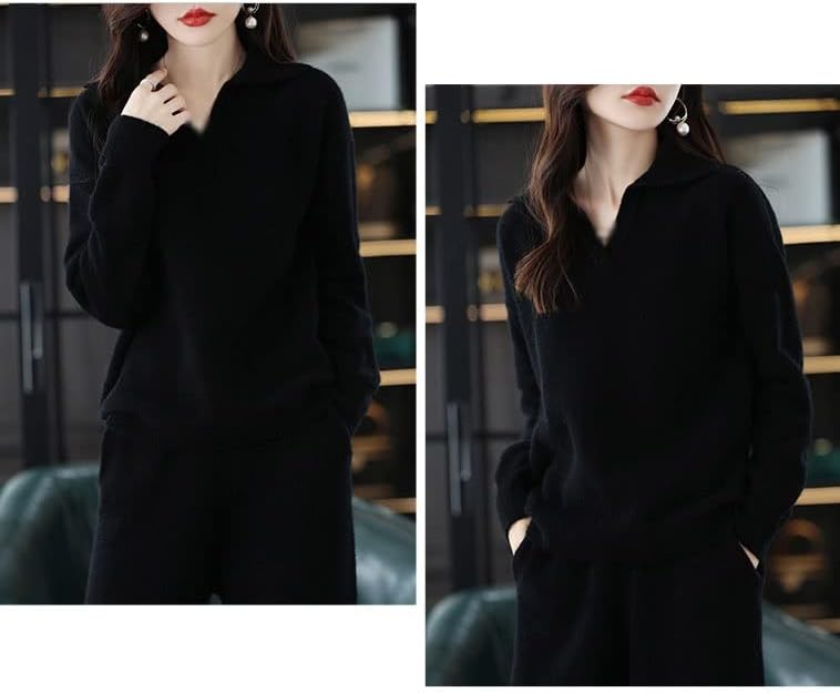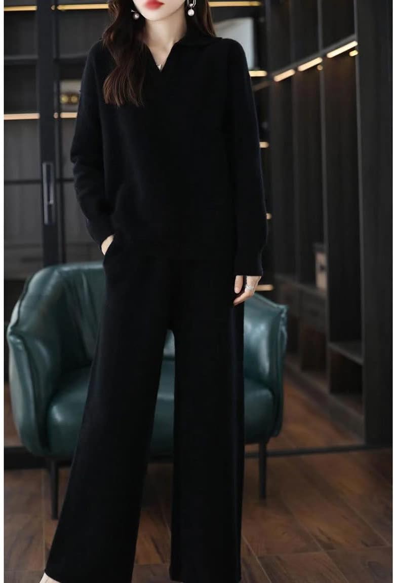 Walnut Casual Wide-Legged Pants Knitted Suit Autumn and Winter Loose Wool Sweater Top High-Waisted Pants Two-Piece Suit (Color : D, Size : M Code)