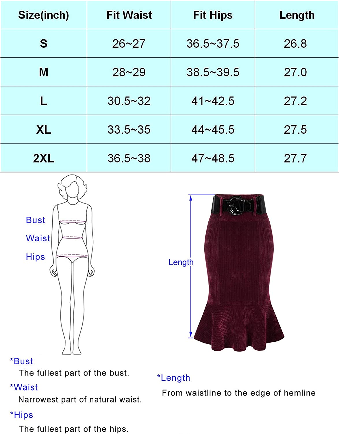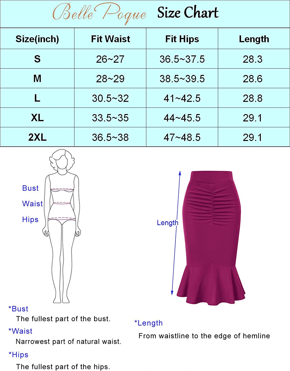 Perfect Fit: With mermaid hemline, this pencil skirts fit like a glove, which can hug your curve pretty well