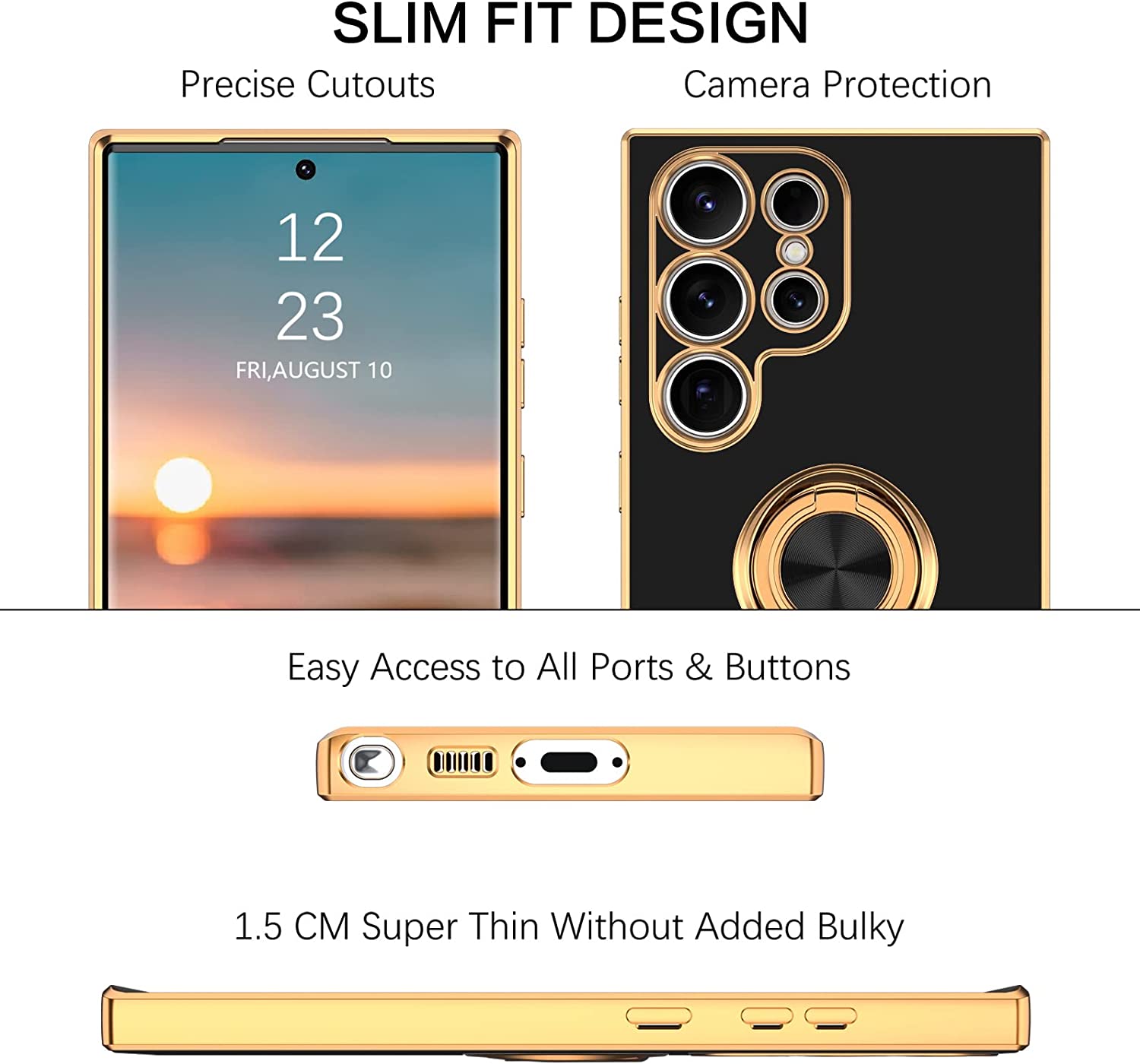• ★【Functional Rotatable Ring & Kickstand】This s23 ultra phone case comes with a convenient adjustable sturdy ring holder which can rotate 360 degree for easy safe carrying. Built-in kickstand gives you the convenience to watch videos and movies hands-free with desired comfort and stability.