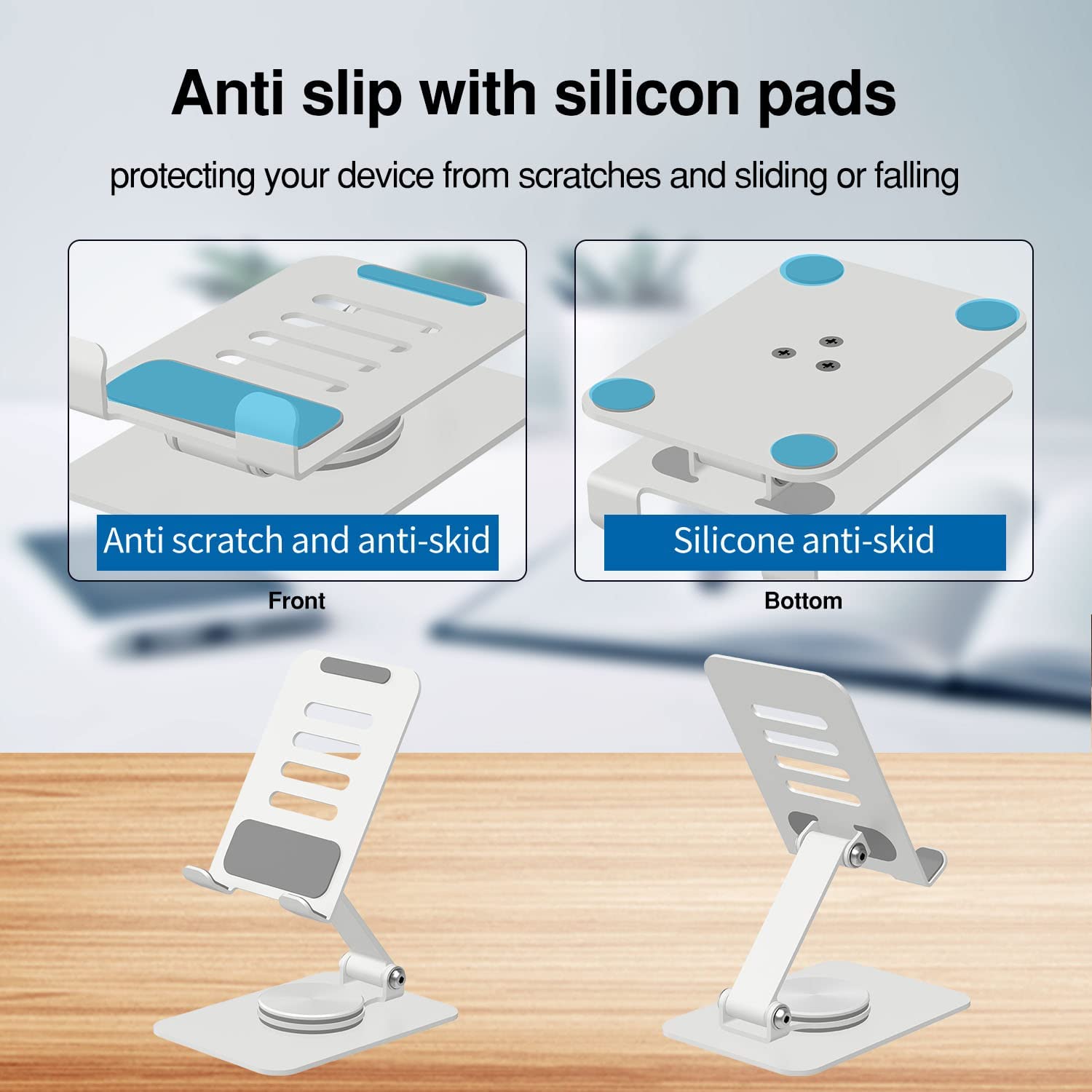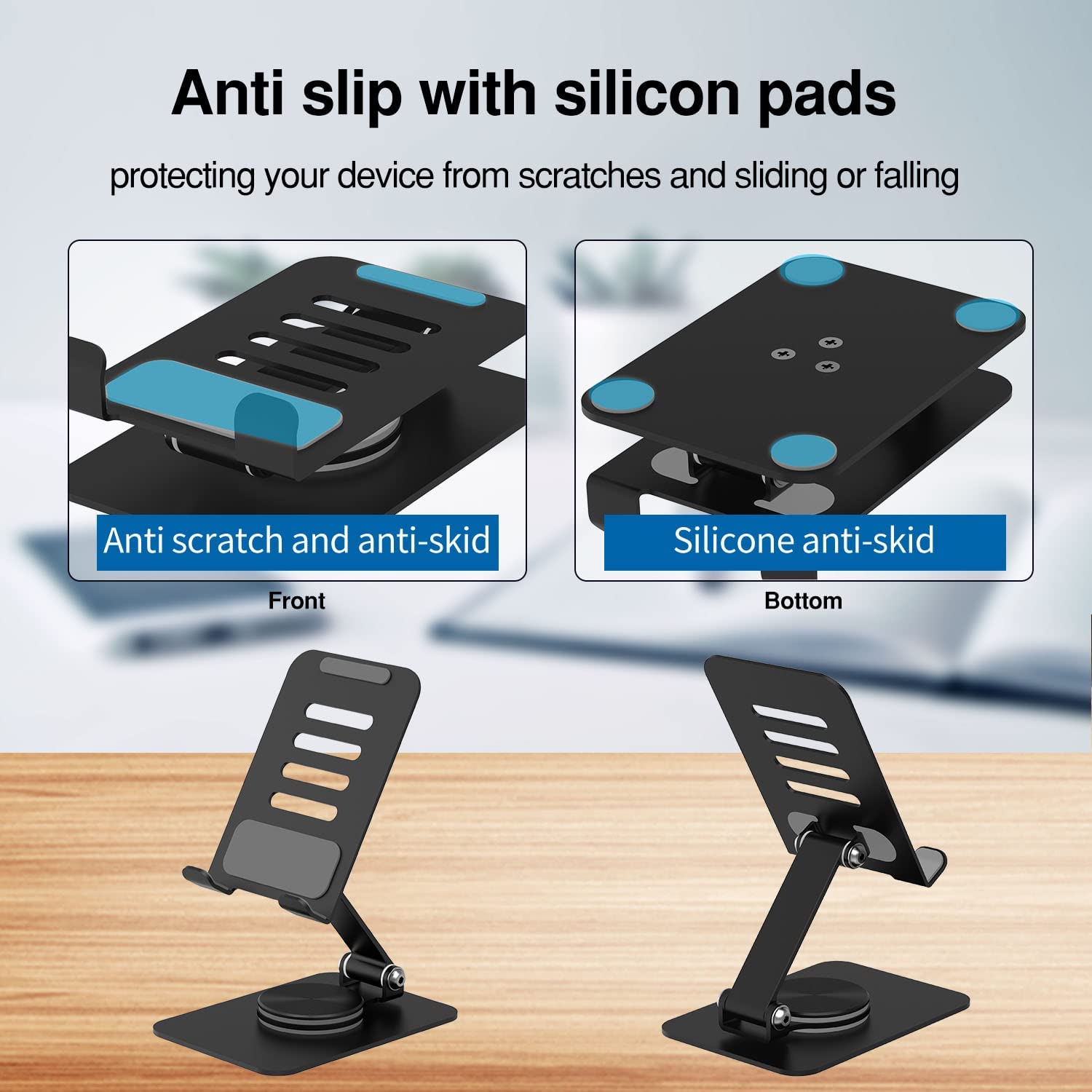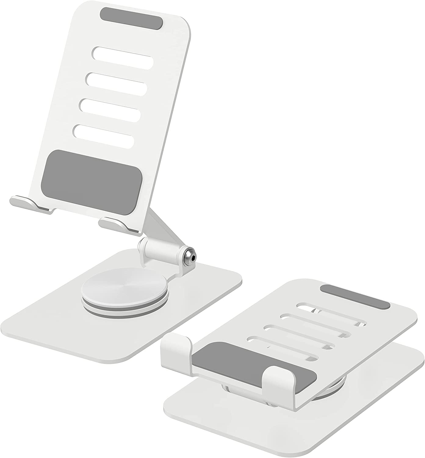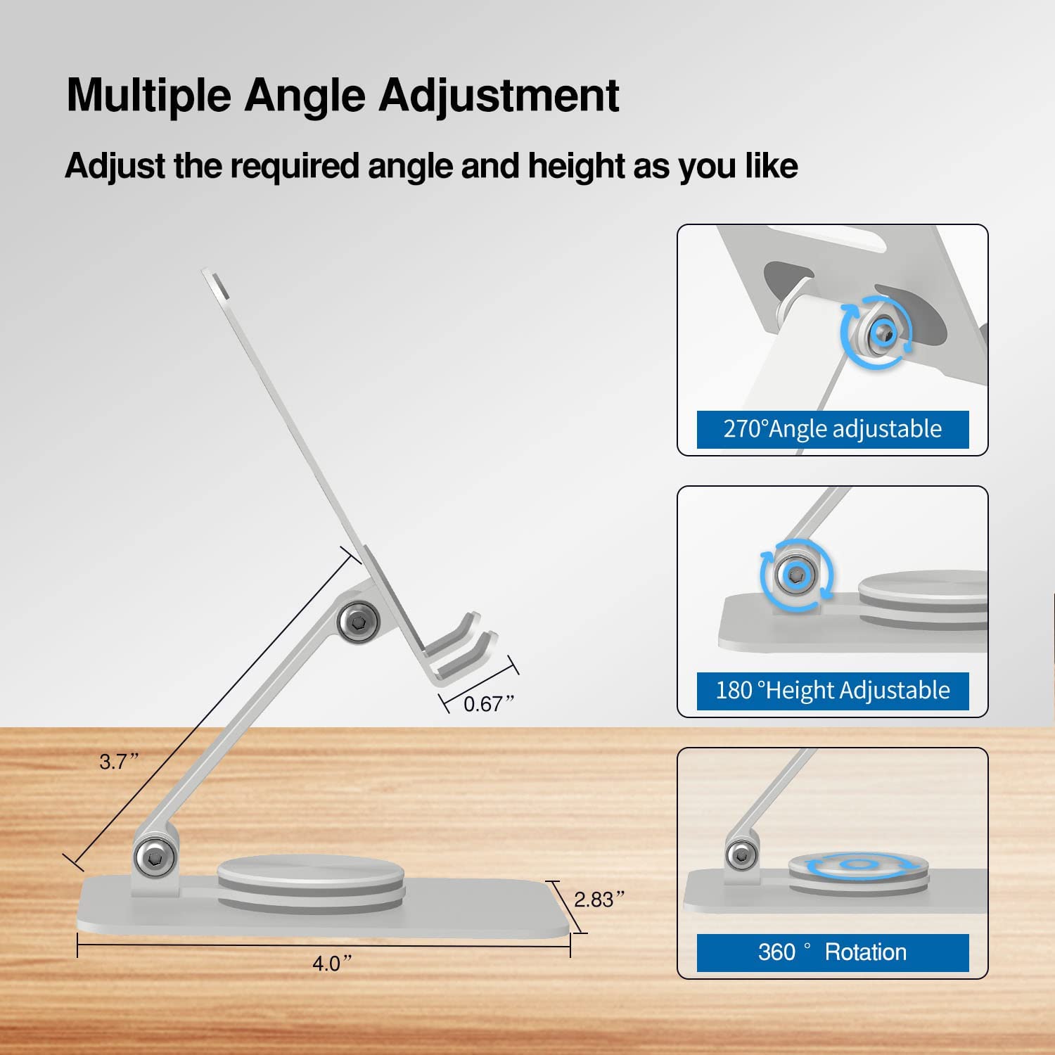 • [Multiple Angle Adjustment] : The height and angle of this 360 rotation phone stand can be adjusted, this foldable phone stand provides you comfortable view and reduce neck & back strain
