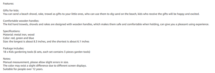 • Multifunctional: kids digging tools are lightweight and compact, can be widely applied for planting flowers, vegetables, digging the sand, loosening the soil, and transplanting the seedlings, can bring kids' life much more fun and provide you with convenience