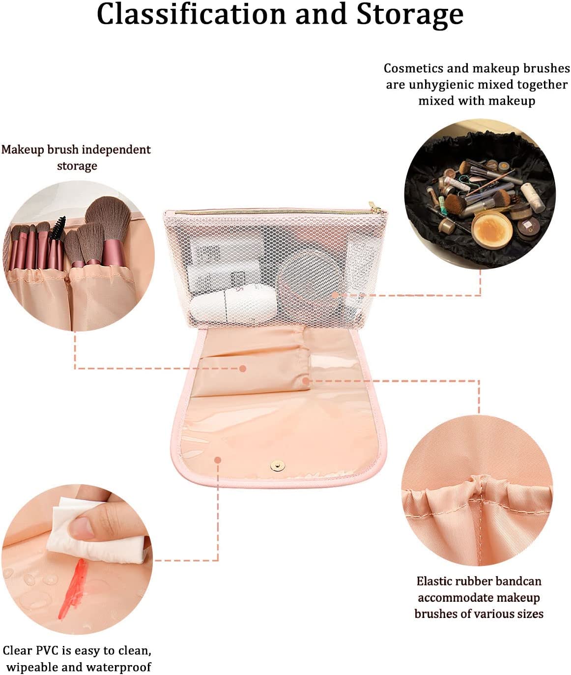 ?LARGE-CAPACITGY COSMETIC BAG :The large capacity travel cosmetic bag is designed with multiple divisions and compartments, which can store not only your cosmetics,makeup bursh,essential oils, Toiletries kits, valuables, etc. It can be organized to accommodate the cosmetics and makeup tools you need;