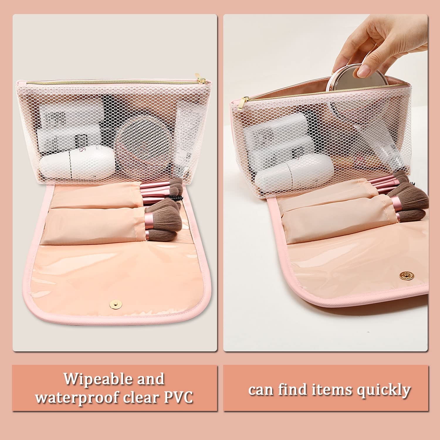 ?WATERPROOF ,STURDY AND DURABLE : Travel makeup bag is made of high quality premium soft and comfortable PU leather, easy to clean and waterproof internal pvc materials;