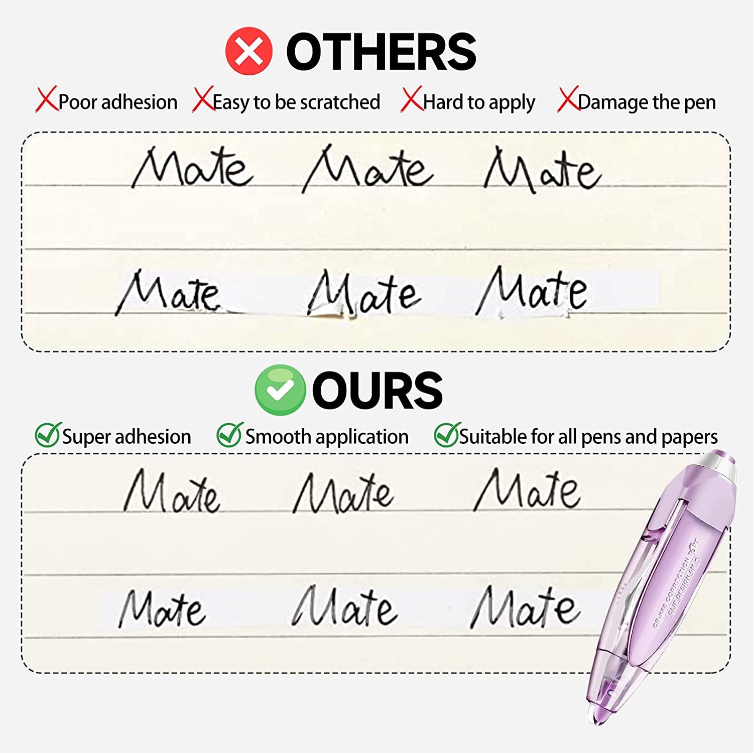 - PRECISE CORRECTIONS EVERY TIME - All you have to do is gently run the correction tape on the paper for instant correction! This white out tape applies smoothly and easily onto most surfaces including newspaper articles, photos and more!