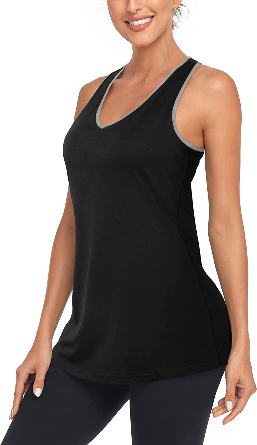 Hibelle Built in Bra Tank Tops for Women V Neck Racerback Workout Yoga Casual Shirts