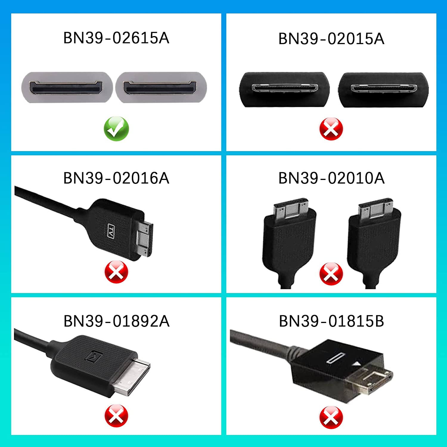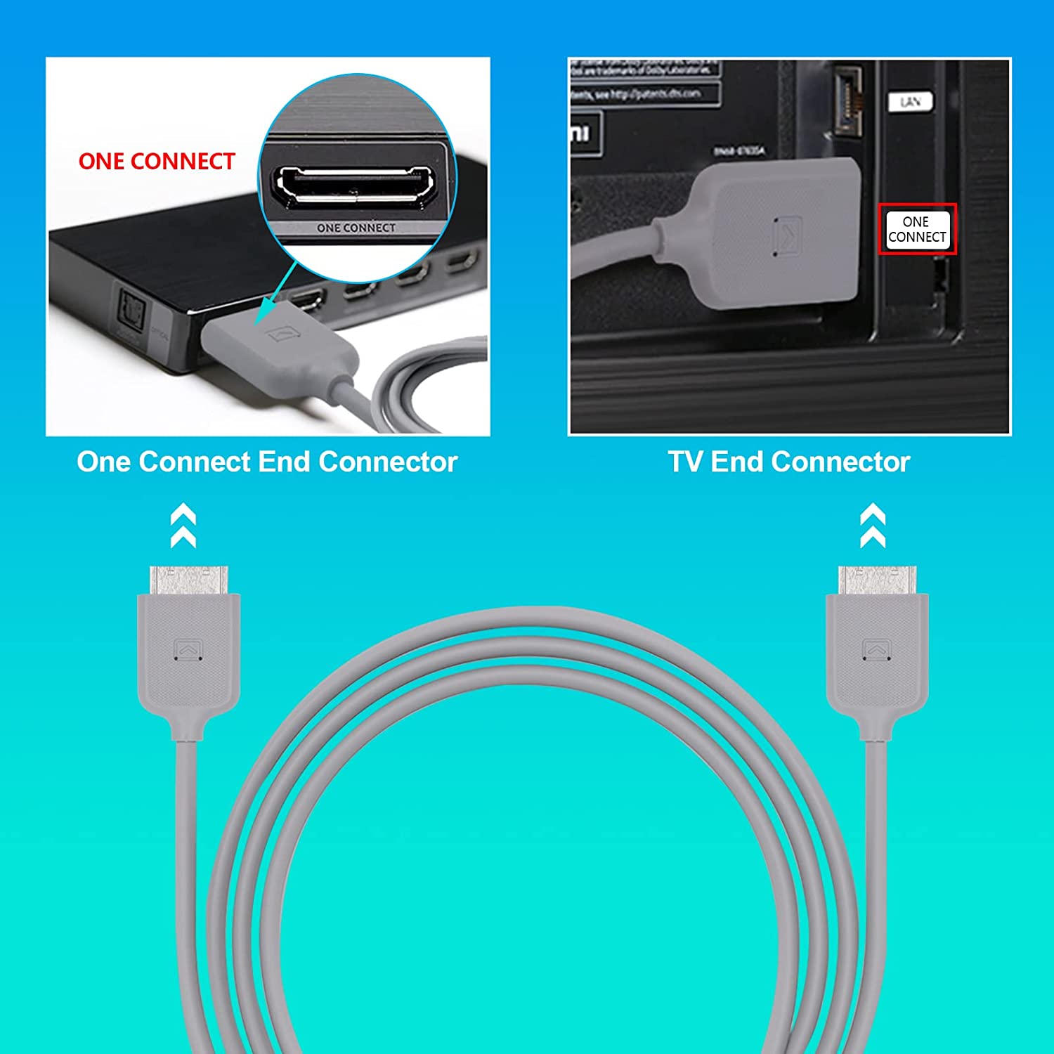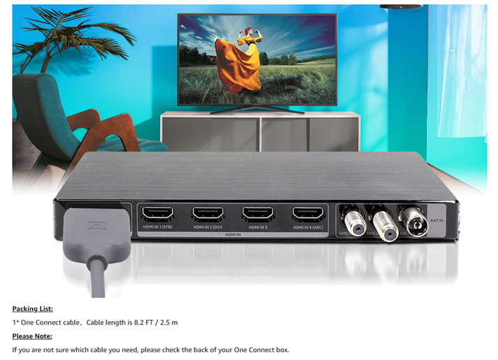 • This one connect cable is used to connect the one connect box with Samsung TV. Replacement part number: BN39-02615A, Cable length is 8.2 FT / 2.5 m. Please check what your TV plug is before placing an order. If you don't know your cable model, Please check the back of the connect box.