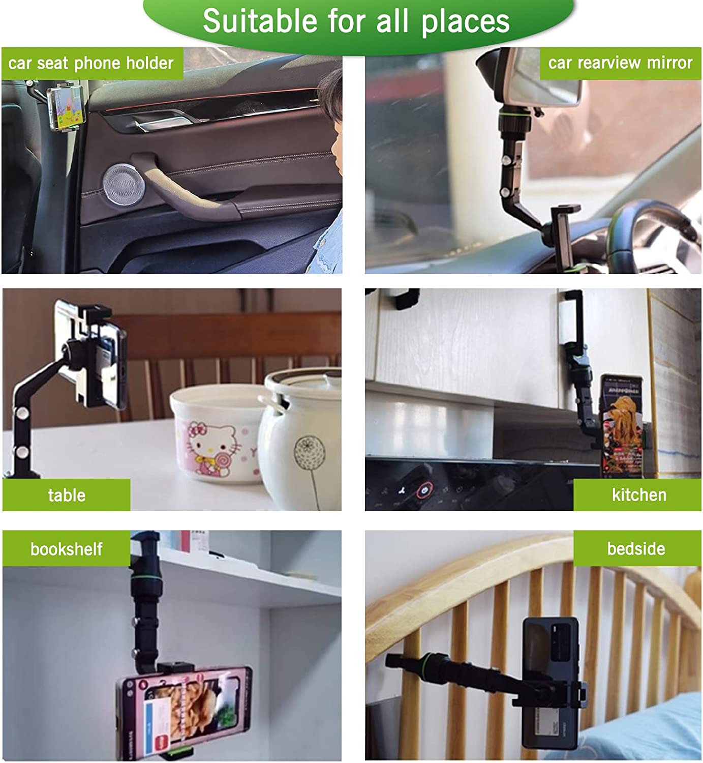 • 【360 DEGREE ROTATION ADJUSTMENT】 Multifunctional rearview mirror phone holder with 360° rotating structure, you can put your phone in any direction (horizontal, vertical and more) and just enjoy the best driving experience. At the same time the arm length can be telescoped 0-5cm, will not block your view.